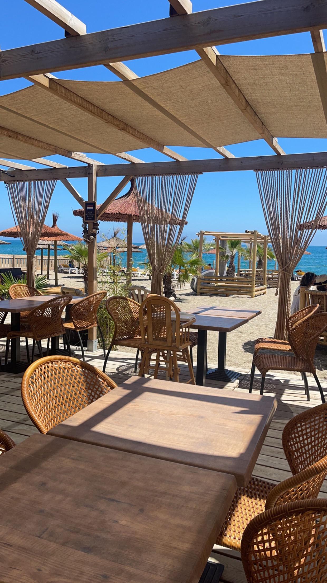 Bel endroit fermé seulement quelques jours après nous. Les choses avaient déjà été mises au clair. Uniquement des boissons non alcoolisées. Il est interdit de consommer de l'alcool sur la plage. Les lits sont bons. Plage non adaptée aux personnes handicapées ou à mobilité réduite.
