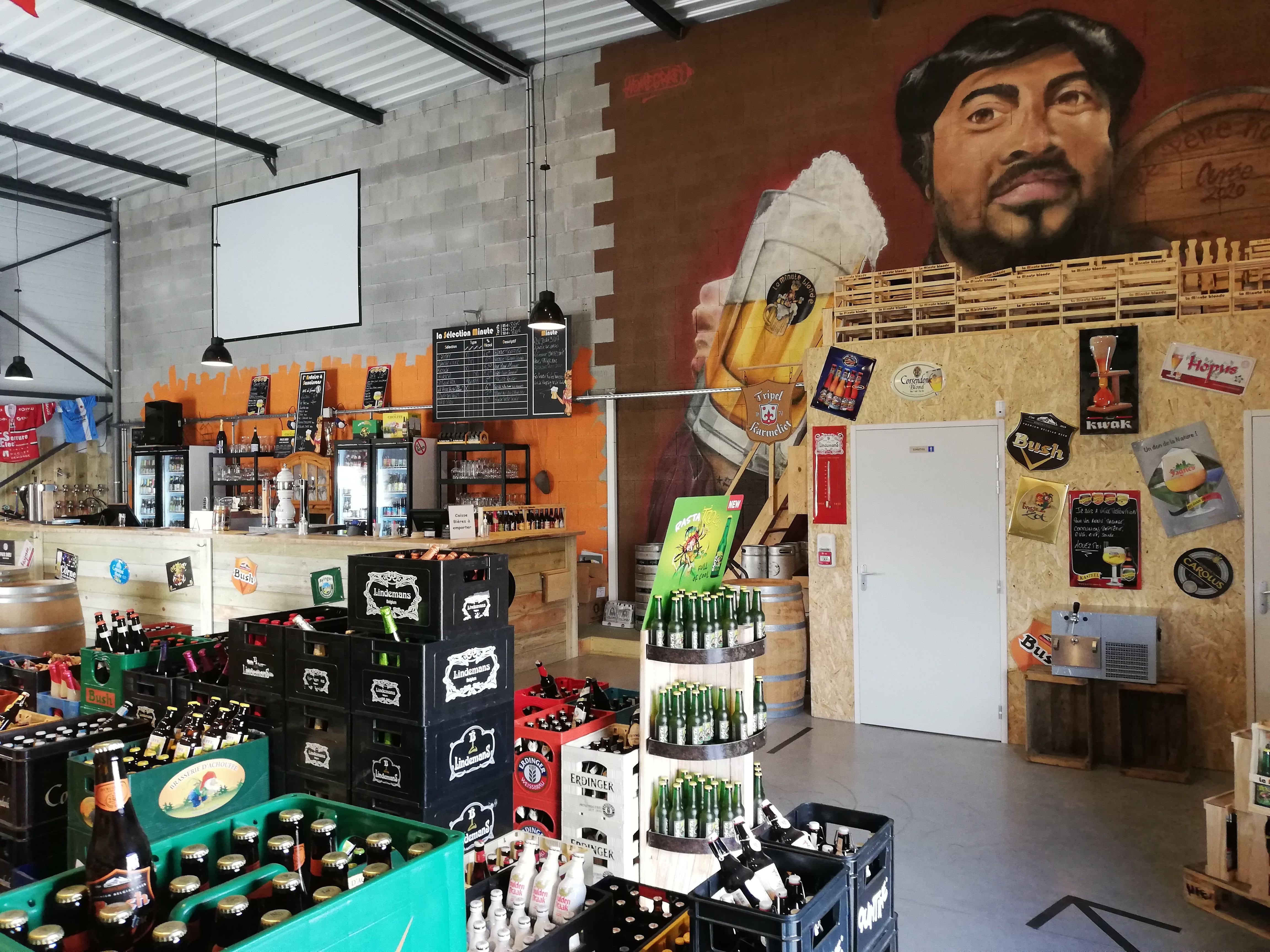 Un peu perdu dans la zone d'activité, établissement et accueil sympathiques, bon choix de pressions et en bouteille côté bar et aussi côté magasin ainsi que des verres des brasseries disposés avec les bières. Quelques tables faites de palettes et tourets avec une terrasse à l'arrière.