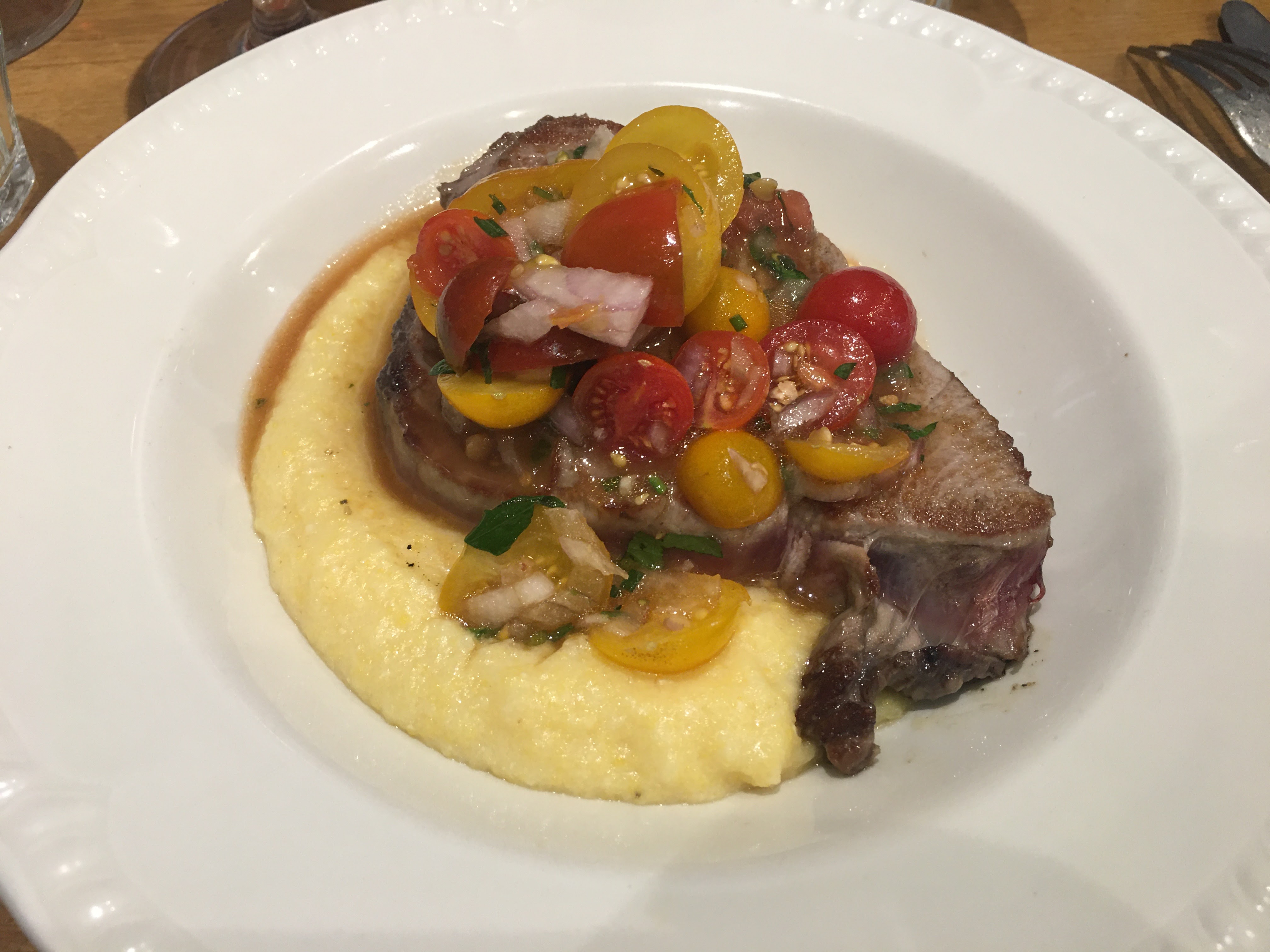 Nous sommes venues dîner un vendredi soir de canicule, la terrasse était un bon choix. Le service est super dynamique et sympathique. La réservation peut se faire leur site. La terrine maison est vraiment excellente et copieuse. Les desserts fins et plein de saveurs. Mention très spéciale au plat : la polenta était succulente et le poisson très bien préparé ! Je recommande.