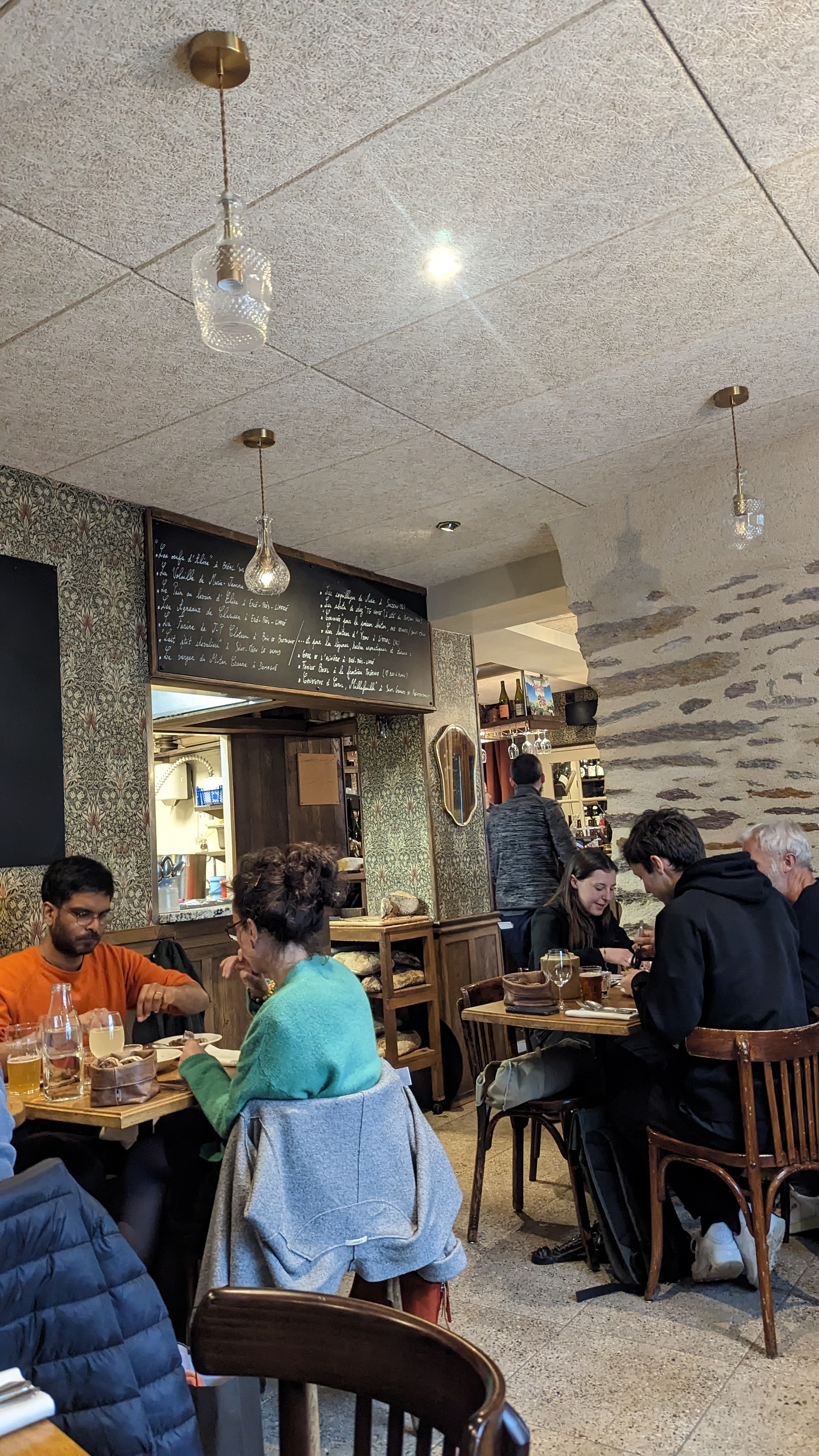 Restaurant très convivial avec une cuisine traditionnelle française (d'antan) revisitée absolument délicieuse. Personnel très agréable, amicale. Service très appréciable. Ambiance jeune et malheureusement bruyante pour qui vient dans le but de discuter. L'adresse est en fait la réunion de deux bâtiments qui devaient être des bars, réunis pas un pas de porte. Pensez bien à réserver avant.