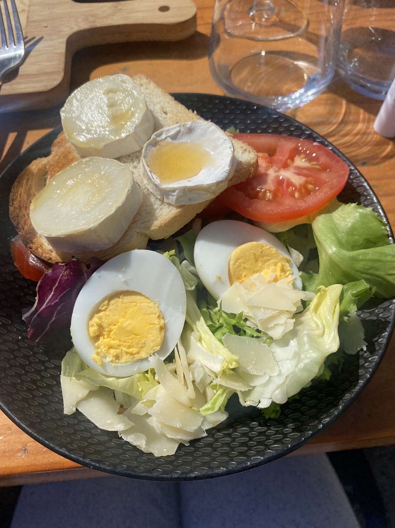 de très bonnes salades, copieuses et avec des aliments frais. Merci pour ce repas et pour l’accueil.