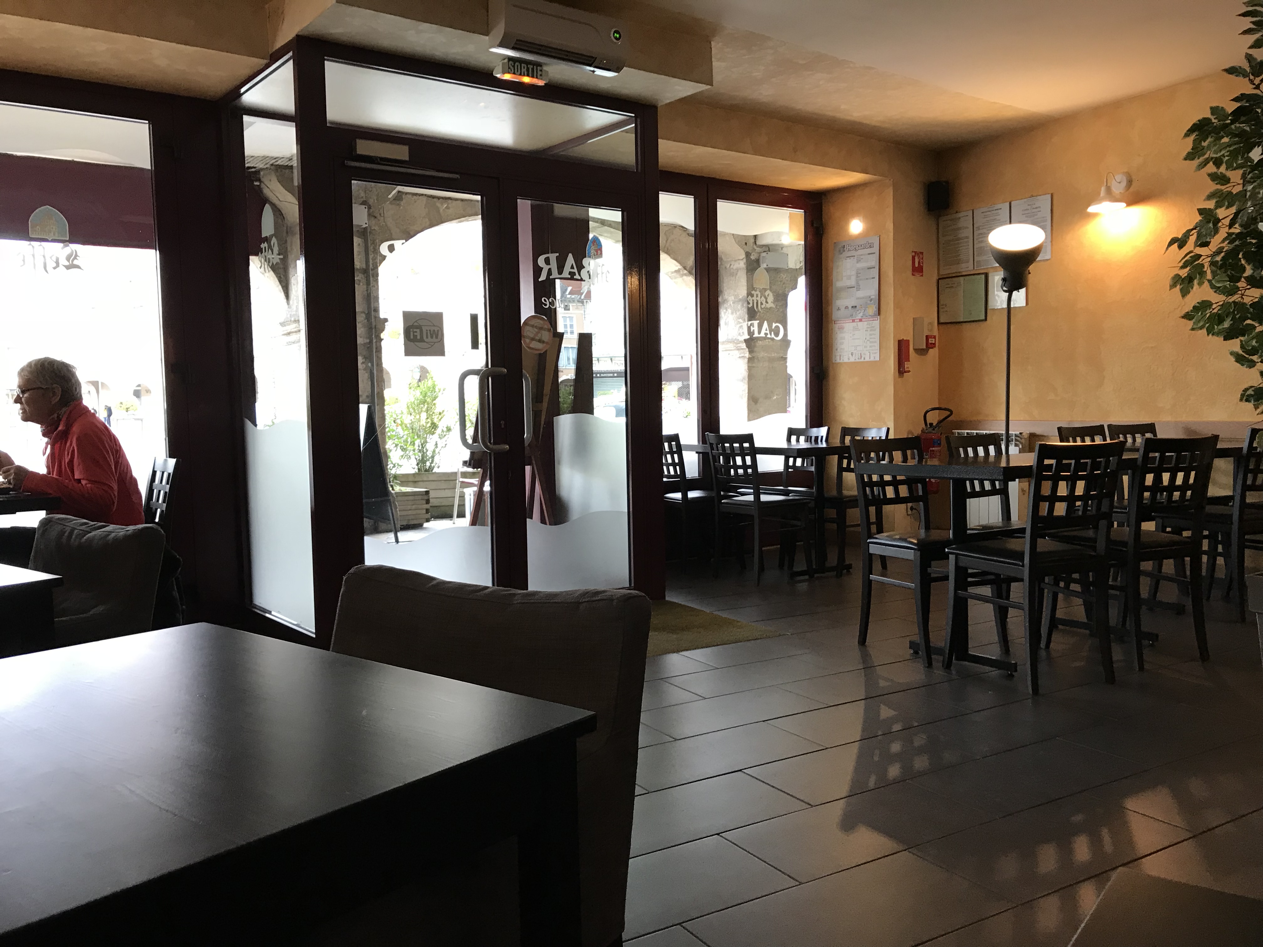 Bar sympa avec jolie vue sur la place. Terrasse sous les arcades très agréable.
