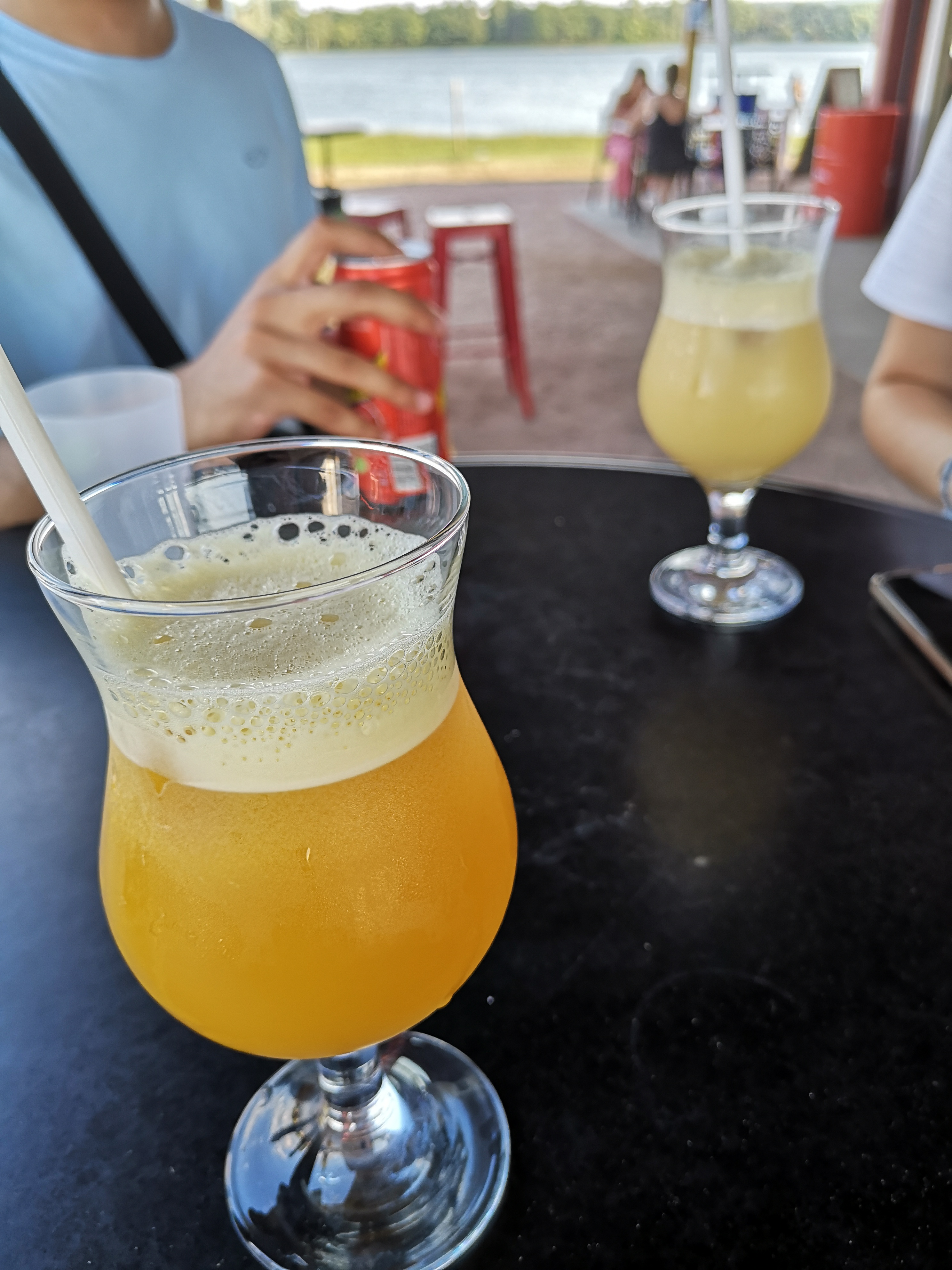 Boissons peu chères. Très joli cadre agréable en été ! On se croirait en bord de mer...😉