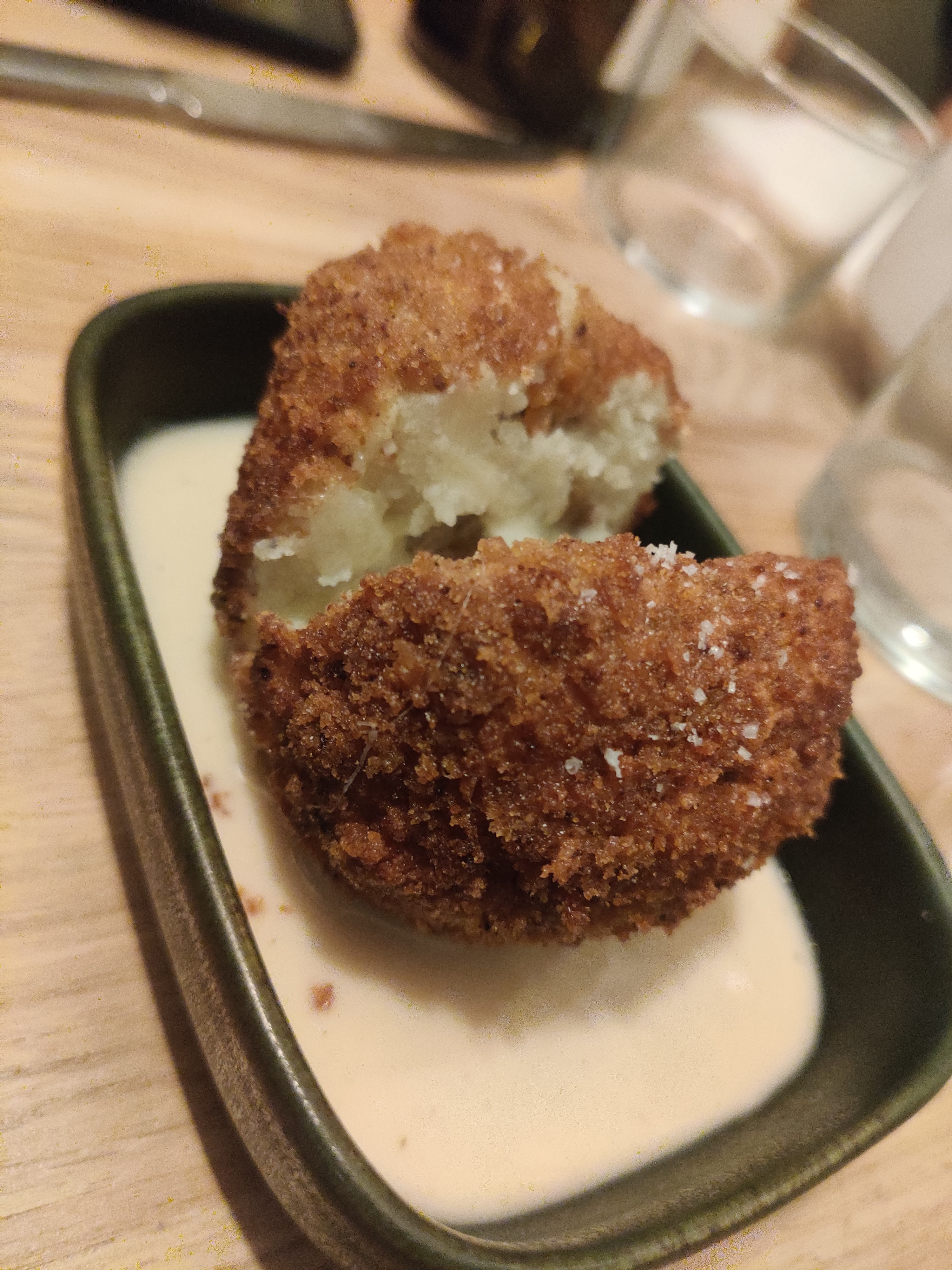 Très très bon resto, avec un chef qui propose un menu avec des produits ultra frais! J'avais une petite crainte sur la quantité avant d'arriver , et au final avec 2 plats j'étais déjà repu ❤️ Petite préférence pour la scarmoza fumée travaillée en crème ! Un délice Bref a tester absolument