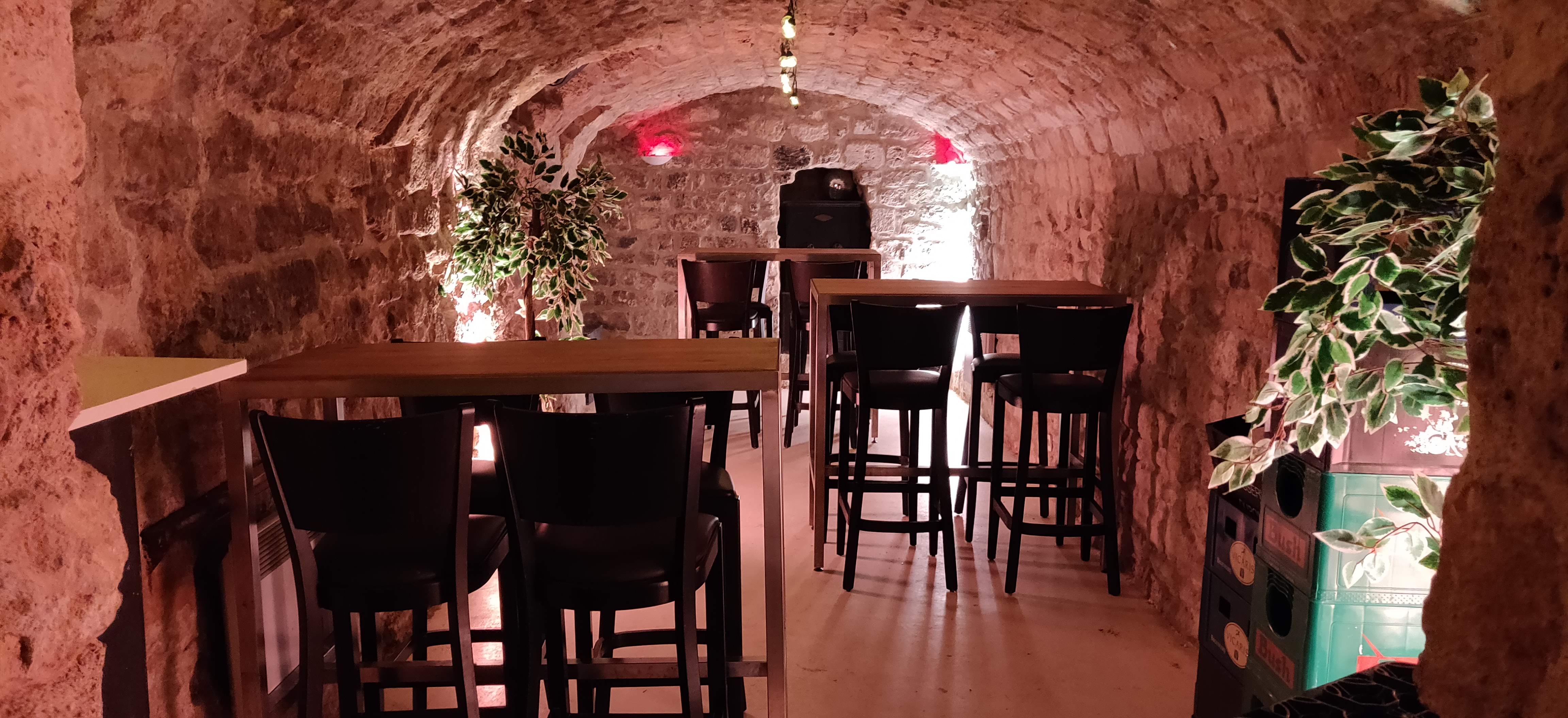 Bar très sympathique avec grand choix de bières et belles caves anciennes au sous sol. Wc en rdc. Par contre attention, vieux escaliers en pierre sans vraie rampe pour descendre, ne convient pas aux pmr