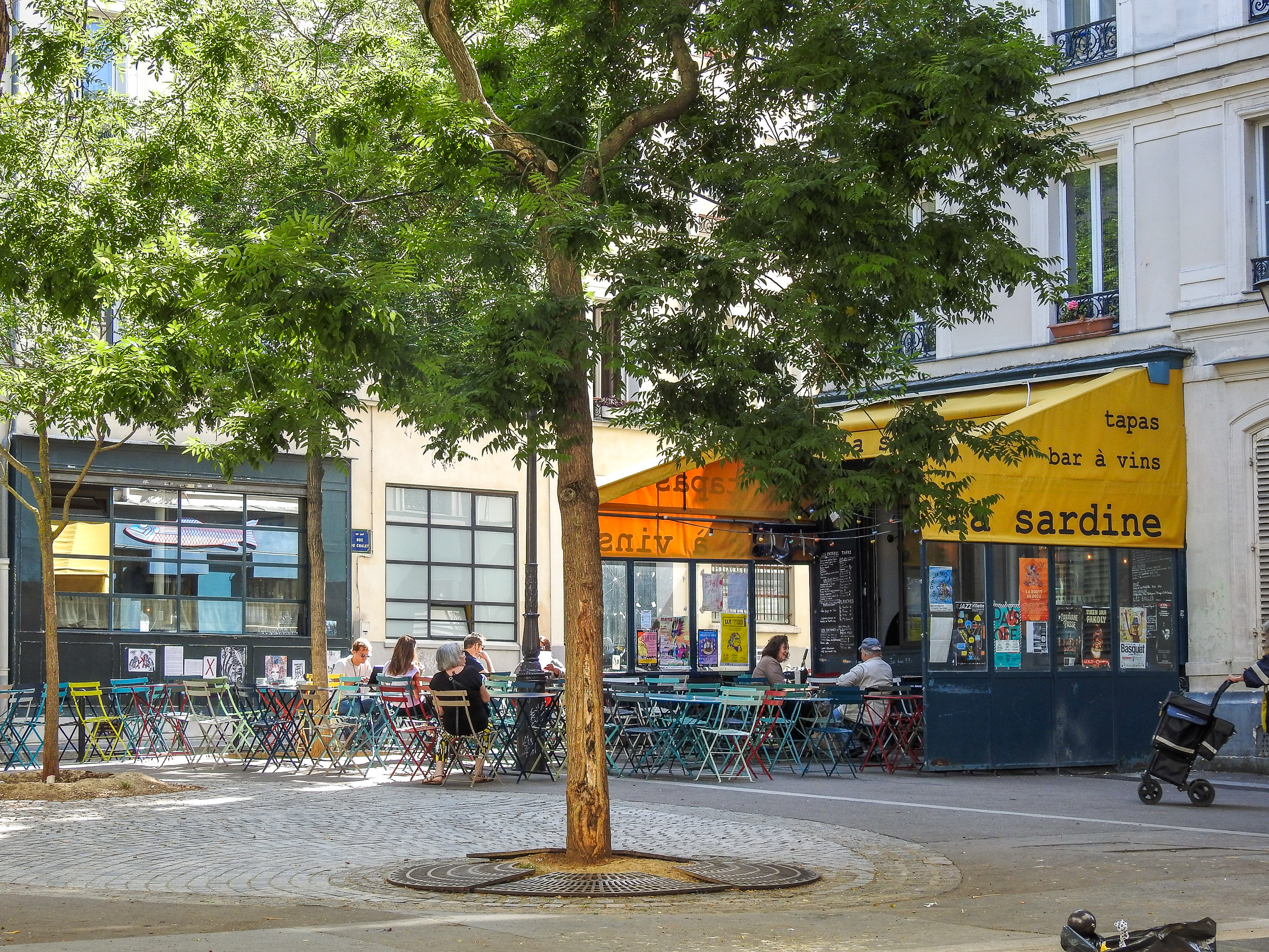 Très belle terrasse sur la place Sainte Marthe ' très vieux Paris'
