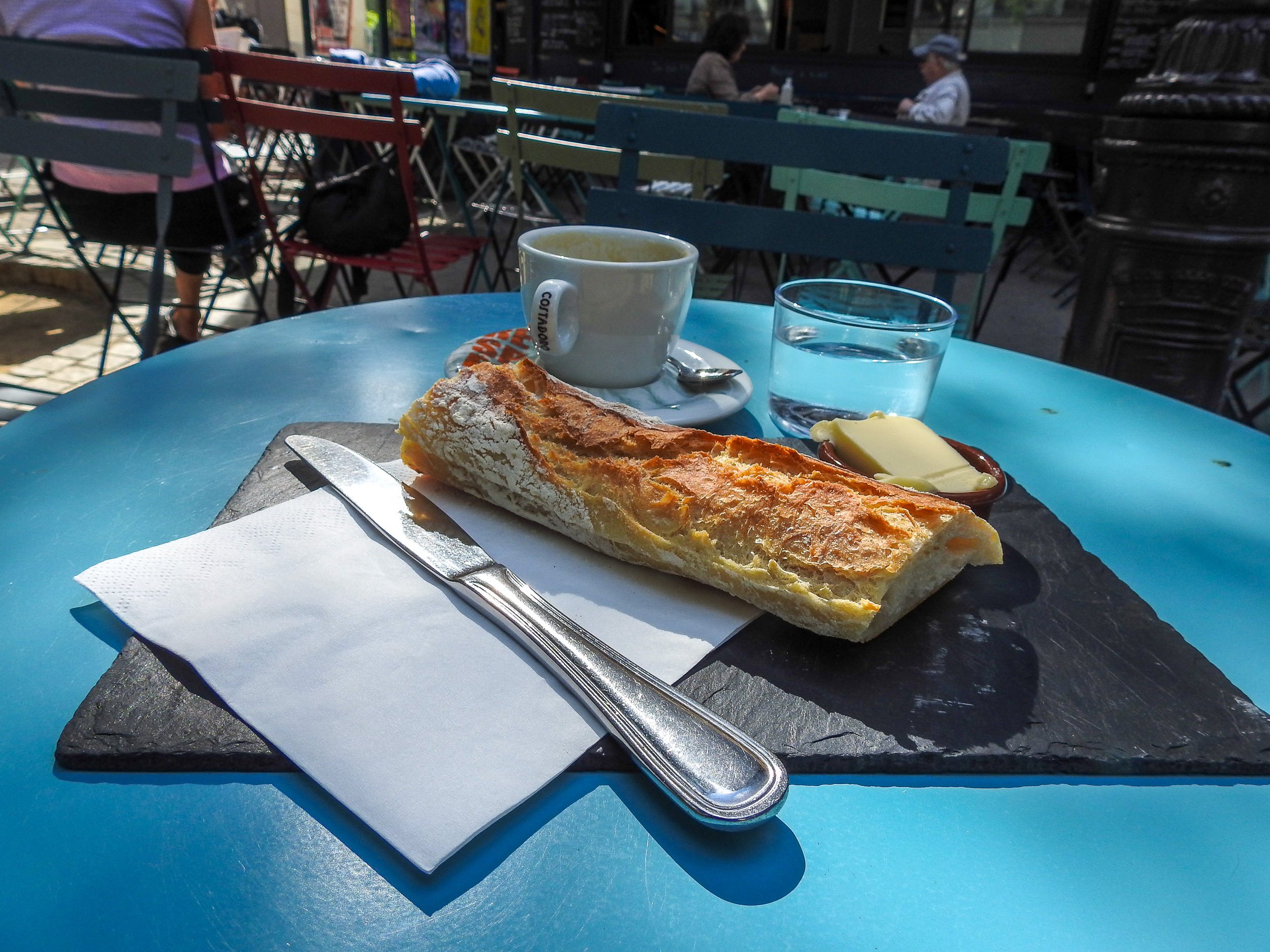 Alors c'est toujours très surprenant de voir des avis désastreux pour un endroit que l'on a apprécié... J'ai du tomber au bon moment, en milieu de matinée sur cette place très calme baignée de soleil et d'ombre. Une dame est venue prendre ma commande et j'ai été servi d'un café allongé et de deux tartines de bon pain à beurrer soi-même (mais c'est mieux ainsi!) avec un vrai morceau de beurre et verre d'eau fraîche. J'ai payé au bar auprès de trois dames souriantes une somme très correcte : 4 euros. Il y a des jours sans et des jour avec ... Je reviendrai tester le brunch pour le côté ultra paisible de ce coin de Paris un peu en retrait de la foule..