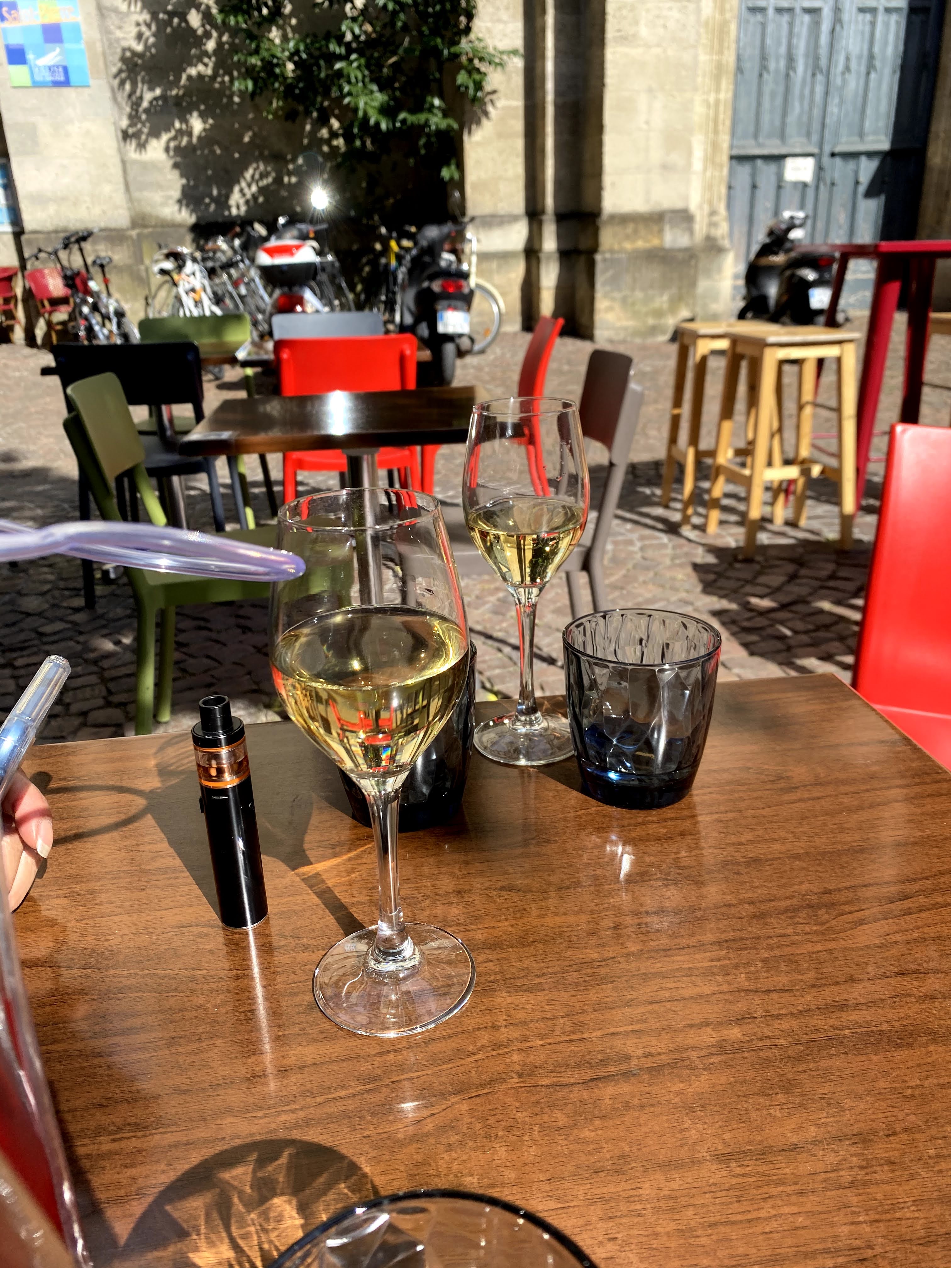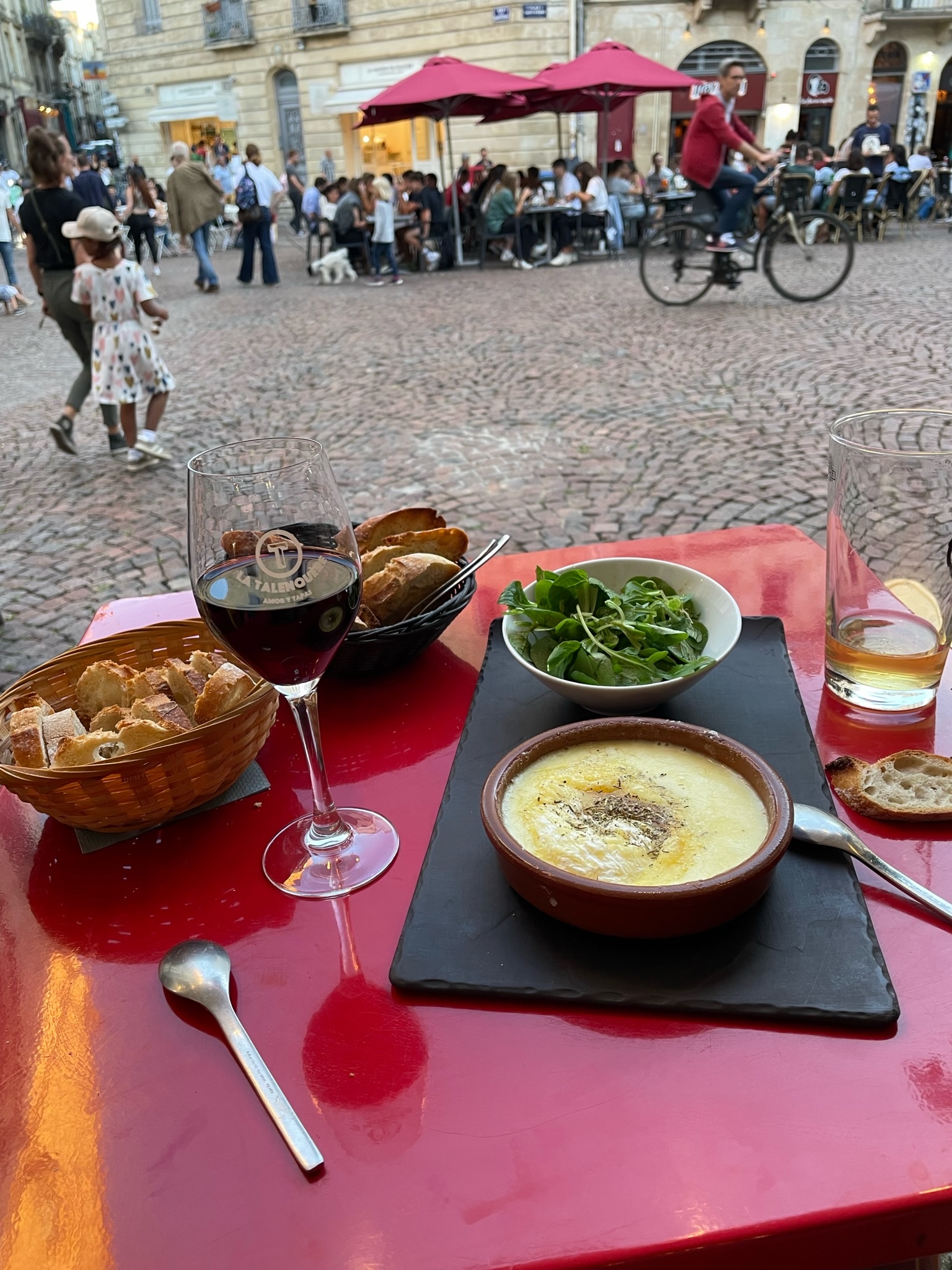 Super endroit pour prendre un verre l'après-midi, je n'ai essayé aucun plat, mais si je restais plus longtemps à Bordeaux, j'aurais tenté le coup. L'endroit est agréable et reposant, situé sur une magnifique petite place à côté de la cathédrale, avec beaucoup de soleil sur le coin. Le service est efficace et rapide, les prix sont plus élevés, mais cela vaut le coup pour l'emplacement, le service et le vin.