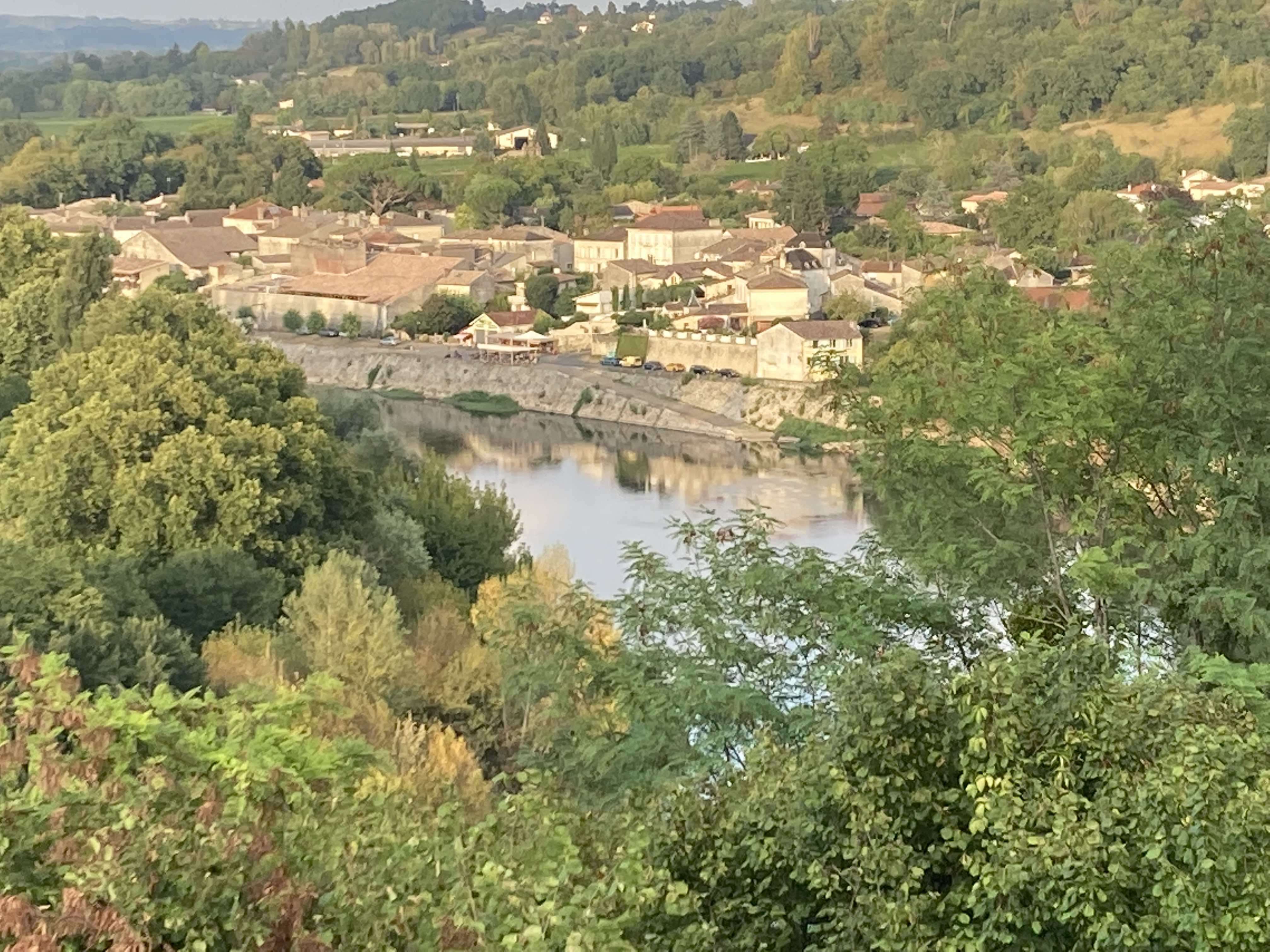 Mon mari et moi avons tellement aimé manger à La Taverne du Belvédère que nous (et notre famille élargie) y avons mangé trois fois au cours de nos dix visites dans la région ! La carte propose de nombreux plats variés et délicieux, faciles à partager. J'ai eu le gaspacho à chaque fois. Un soir, dix d'entre nous ont commandé presque tout le menu et chaque plat a été dévoré ! Les serveurs sont sympathiques et efficaces. Un avantage supplémentaire de manger à La Taverne du Belvédère est que le restaurant (qui dispose de sièges à l'extérieur) est situé sur une colline surplombant la Dordogne et les terres agricoles environnantes, offrant une vue magnifique pendant nos repas. Notre choix répété de vin provenait du vignoble La Tourbeille, juste en haut de la colline.