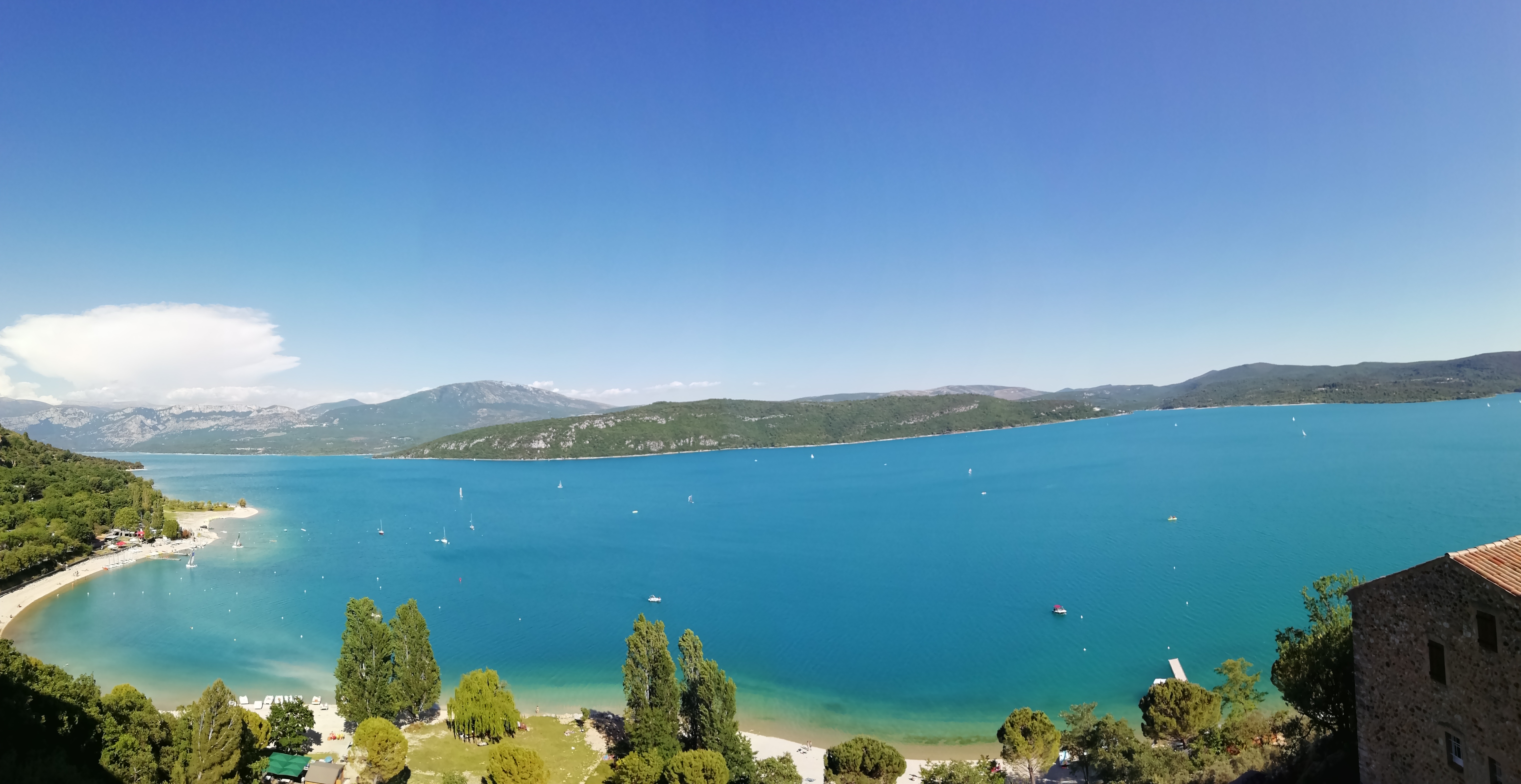 Voilà une vue superbe et unique. Surplombant le lac magnifique de sainte croix, vous pouvez vous rafraîchir et vous restaurer. Incontournable sur site. Ne pas hésiter.
