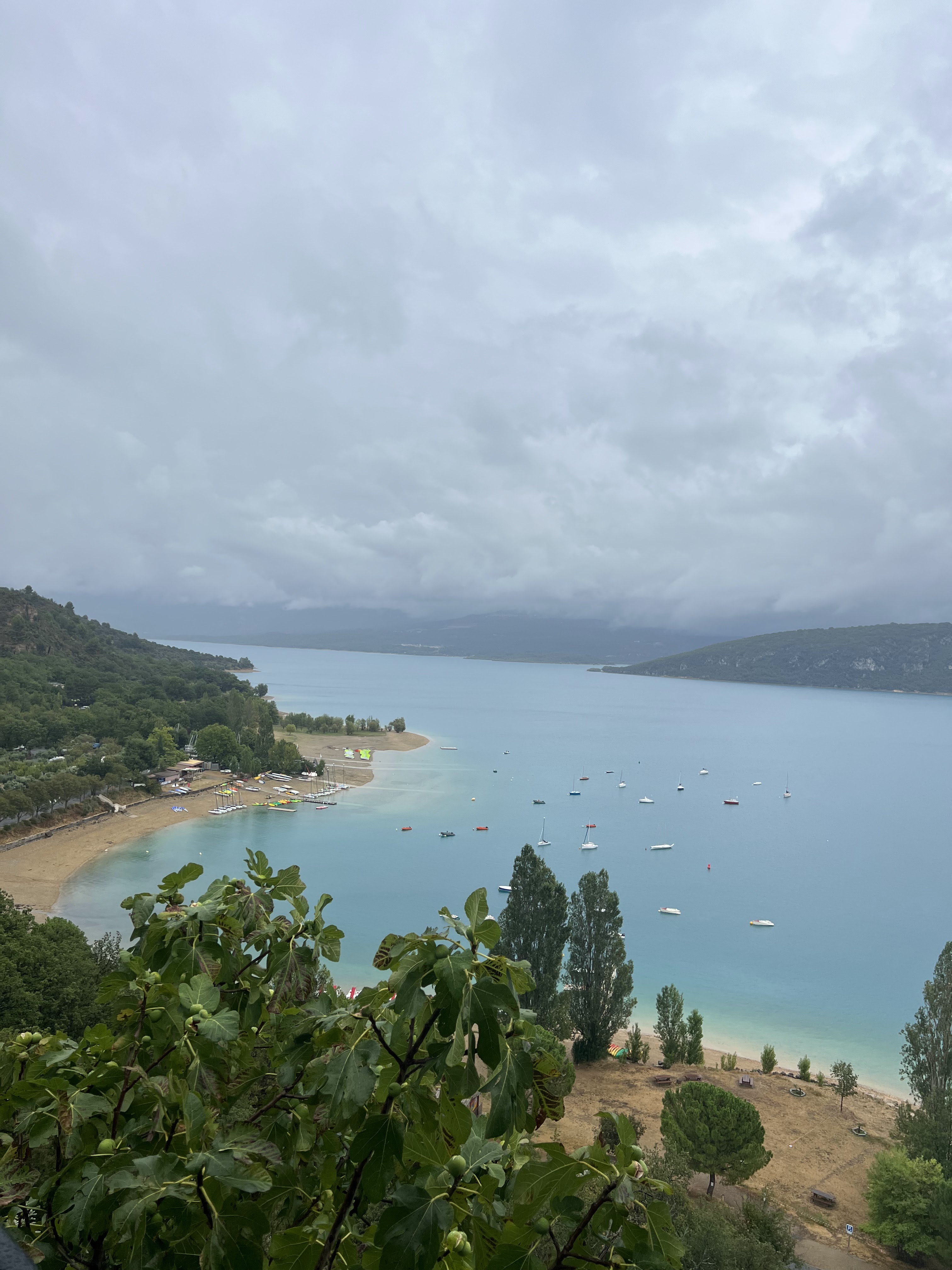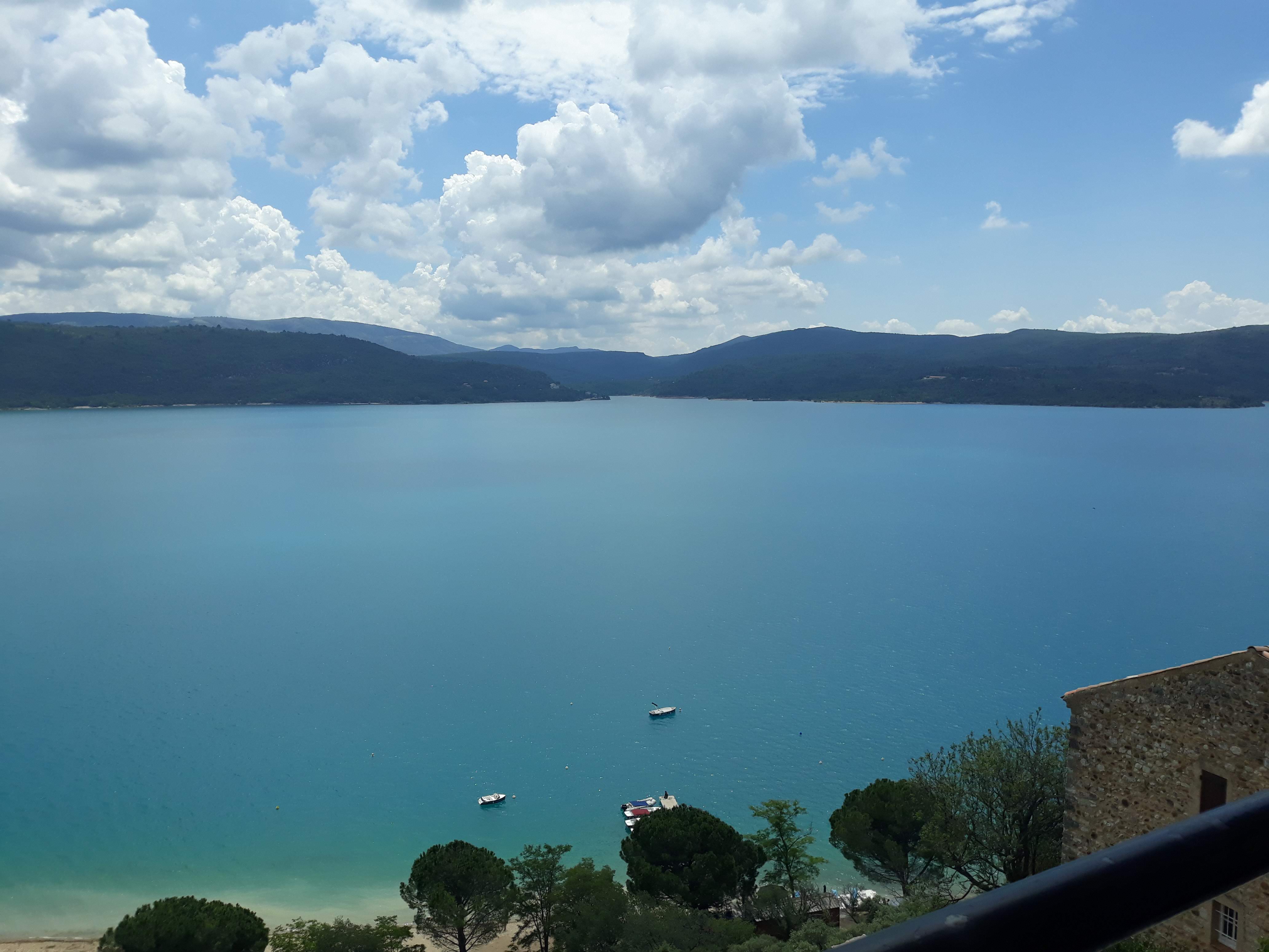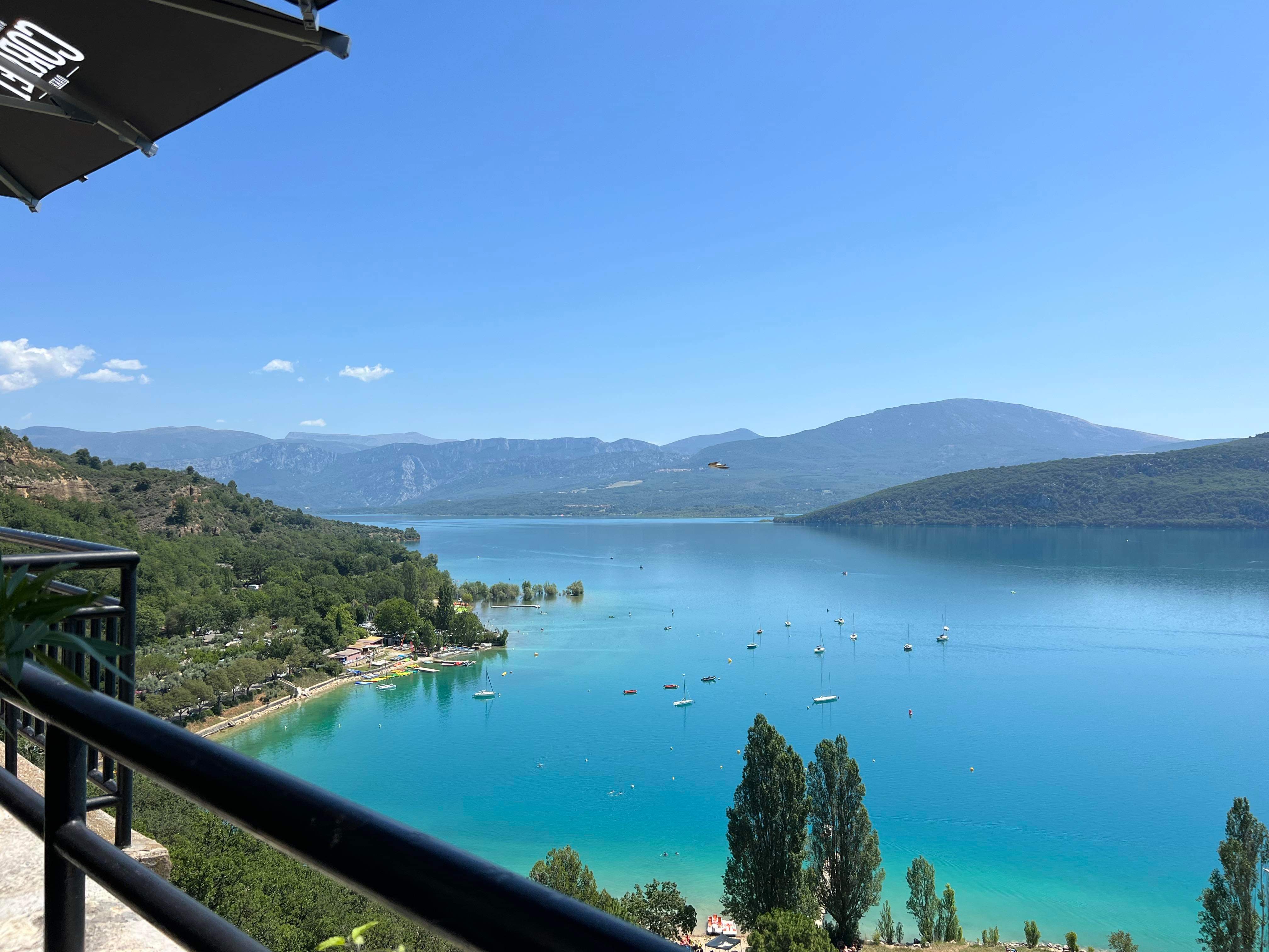 Vue splendide sur le lac de Ste Croix. Petit bémol pour un Aperol Spritz à l'eau gazeuse sans Prosecco