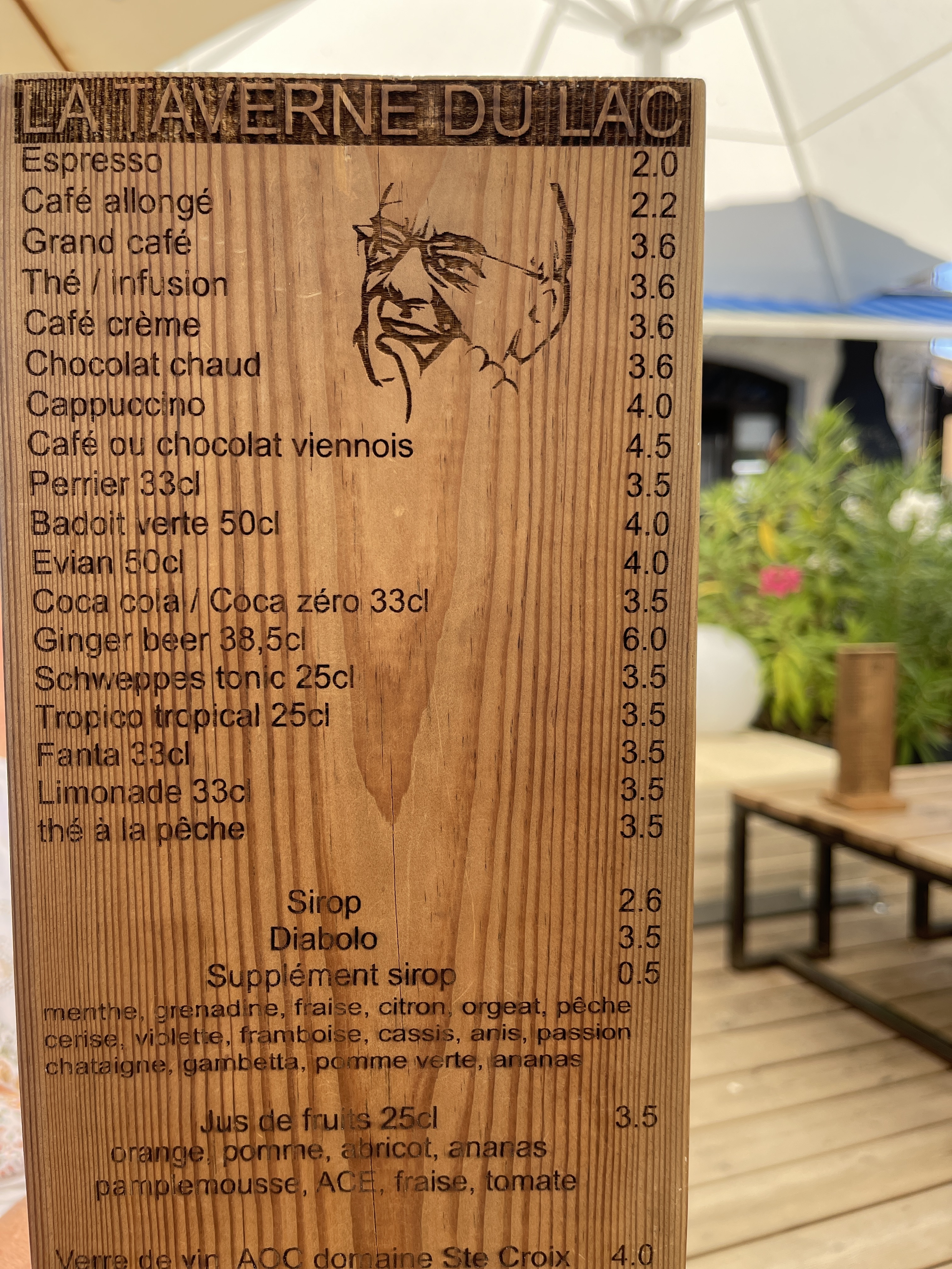 Une très belle vue sur le lac. Nous avons étais malgré tout déçu par l'accueil et une carte très réduite. Impossible de commander une bouteille de vin (service uniquement au verre) une carte très restrainte (plateau de charcuterie 15€ ou salade pas très garni). Bien pour boire un verre pas plus...