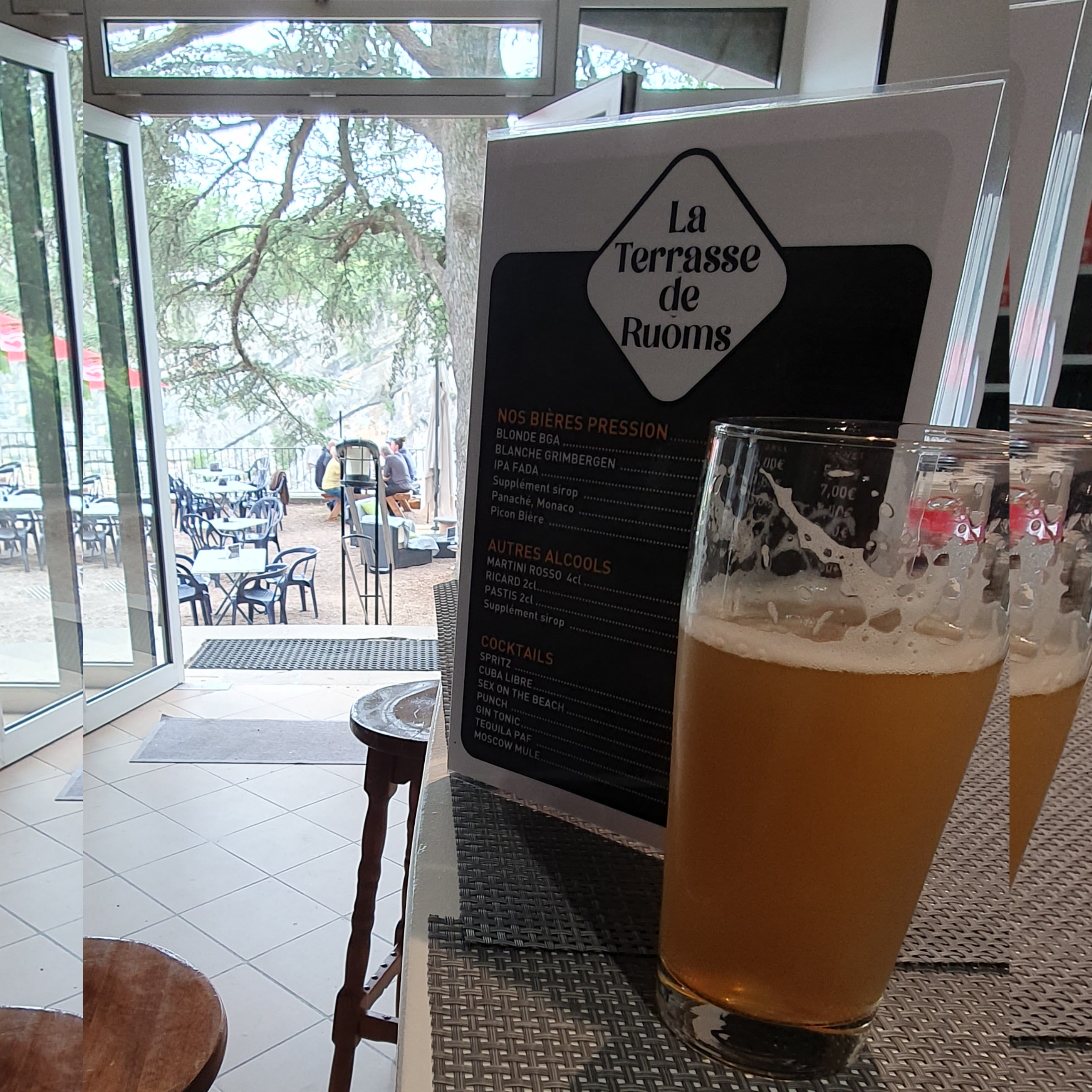 Que du bonheur 😎 La plus belle terrasse des environs avec une vue incroyable sur la rivière ! Nous avons dégusté, en famille, une excellente bière artisanale (BGA brassée sur place, dans les sous sols des anciennes brasseries de Ruoms) à l’ombre de magnifiques cèdres, apprécié l’ambiance véritablement conviviale du lieu et des nouveaux propriétaires (brasseurs). Nous y sommes retournés plusieurs fois depuis …. Au Top 👍