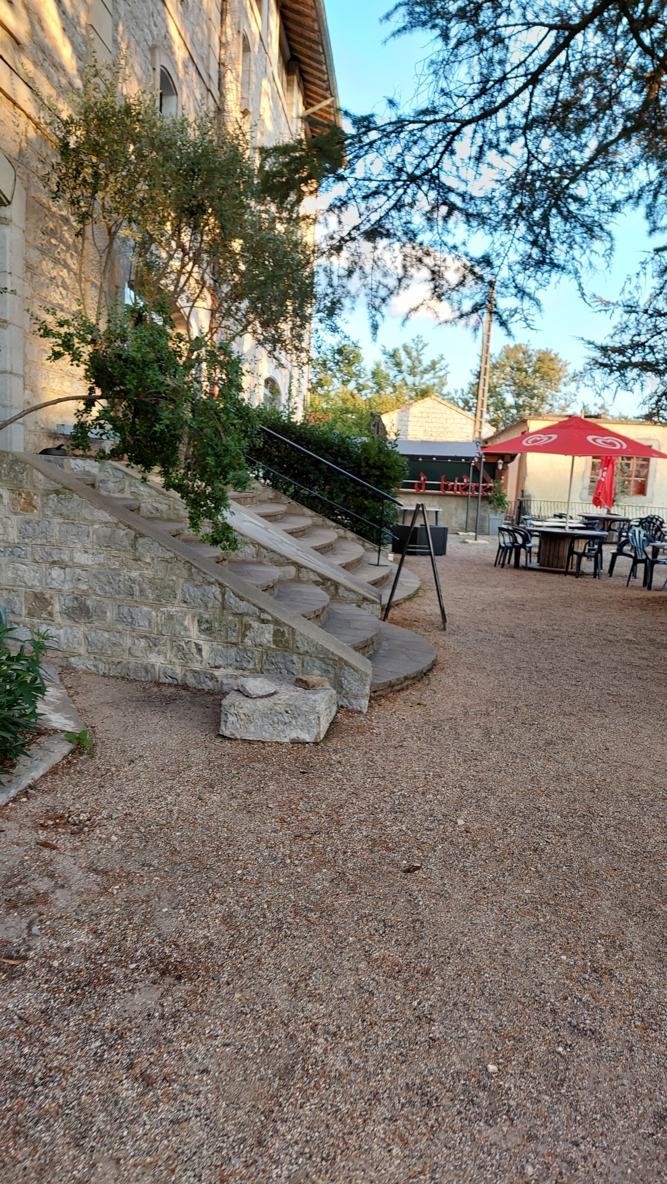 Ambiance très sympa, bercée par le chant des cigales. Un super moment autour d'une planche apéro parfaite pour deux, d'une bière brassée sur place dans un lieu qui revit. Vue superbe sur l'Ardèche et ses falaises depuis la terrasse. Et en plus les propriétaires sont très agréables.