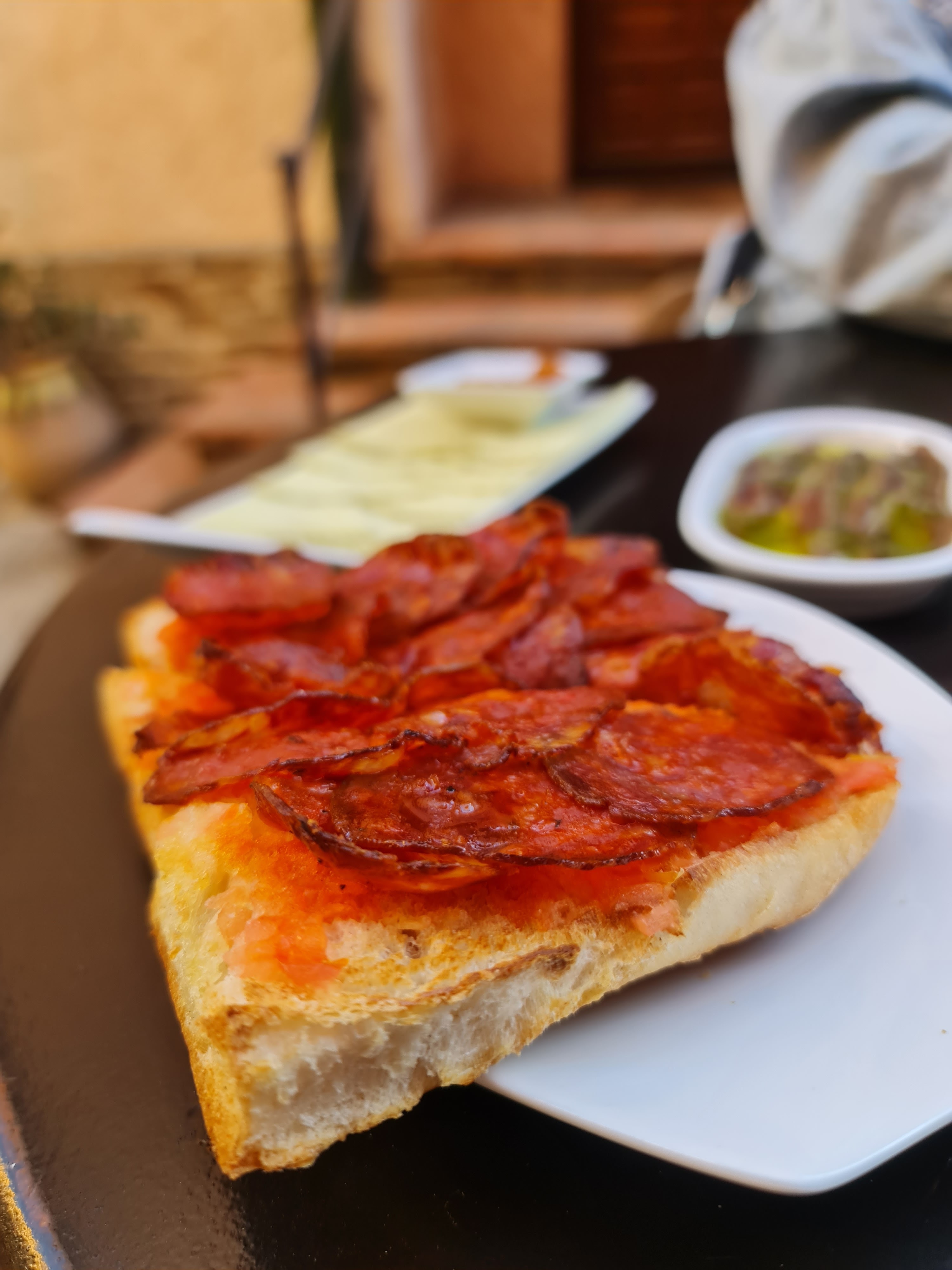Petit restaurant situé dans une ruelle en plein centre ville. On y mange à l'extérieur, sous une tonnelle de vigne ce qui est très agréable en période de grosses chaleurs. Les serveuses sont très agréables et professionnelles. Le menu est uniquement constitué par des tapas sur des plateaux, généreusement garnis. Les tartines à la tomate(sans ail) sont préparés juste avant d'être servis. Ils sont tièdes, un véritable délice. Un plateau pour 2 avec un dessert revient à 17 euros/ personne. Rien à redire donc sur le rapport qualité / prix dans ce restaurant. Je conseille vivement cet établissement et vu l'affluence je ne suis pas la seule à le penser.. Mais attention, pas de possibilité de réserver. Alors un conseil: arrivez à l'ouverture (11.30) !! Vraiment une belle découverte.