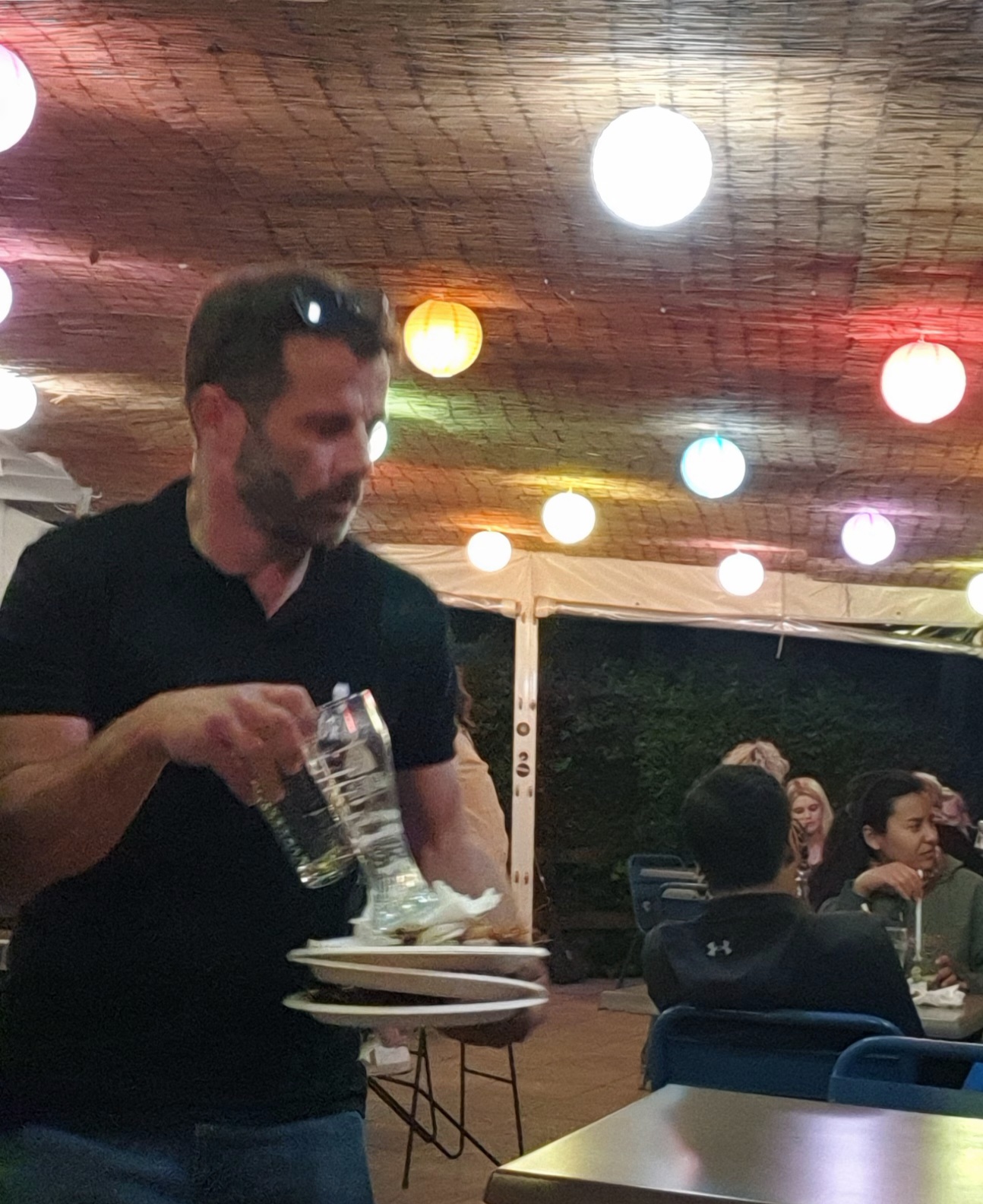 Accueil austère, placé à la va vite sur une table bancale sur des tabourets tout aussi bancale. 15 minutes et deux cigarettes plus tard aucun serveur. Nous sommes parti.
