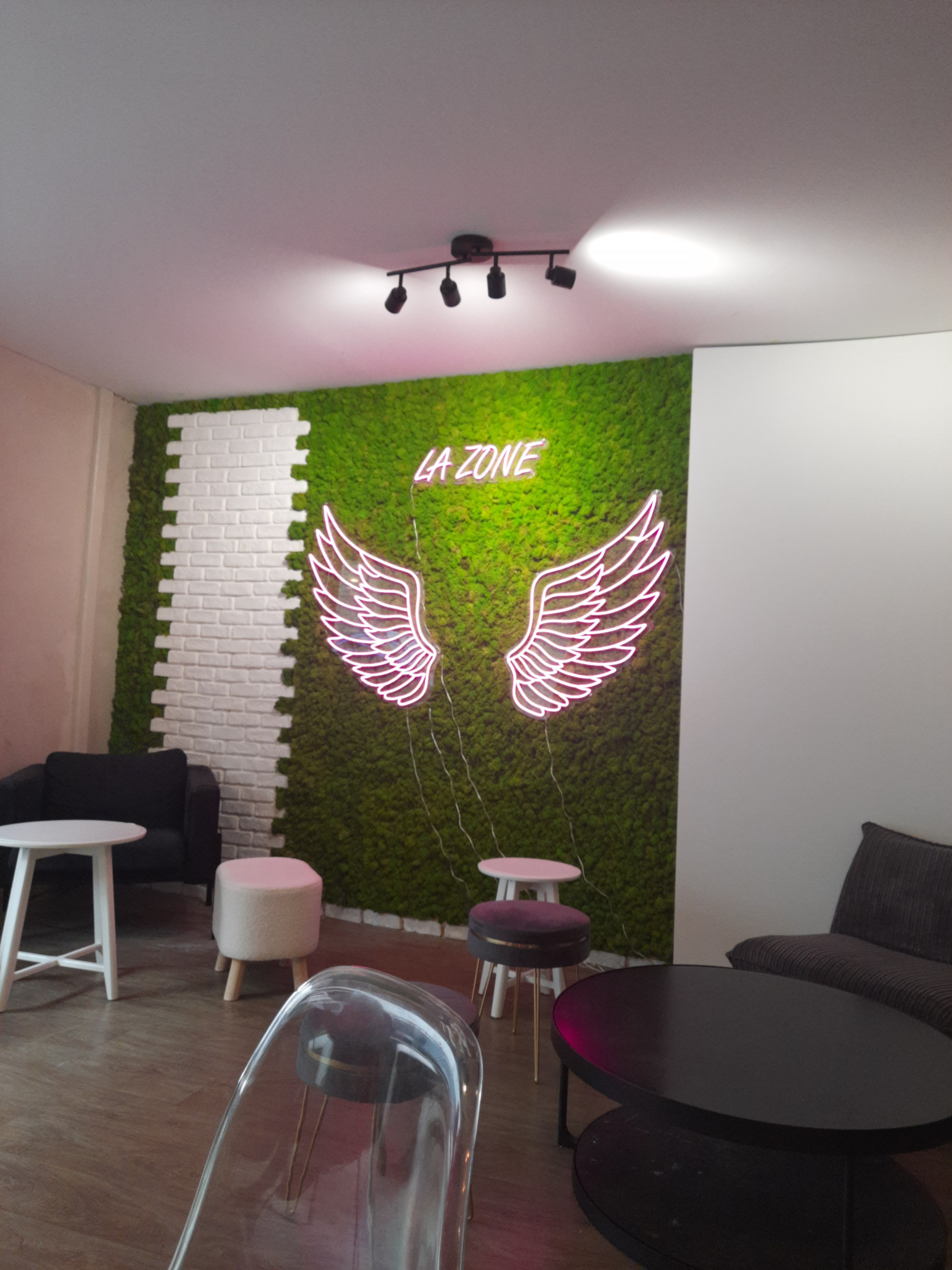 La Zone est un concept très sympa, on y vient pour déguster des boissons chaudes ou froides, sans alcool... Manger des gaufres maisons. La convivialité est de rigueur 😁 on prend le temps de déguster et jouer aux jeux de société pendant que les enfants jouent à la console sur les TV grand écran (1 côté Nintendo Switch, et un autre Sony PlayStation 5) ... Très agréable, les enfants adorent !!!