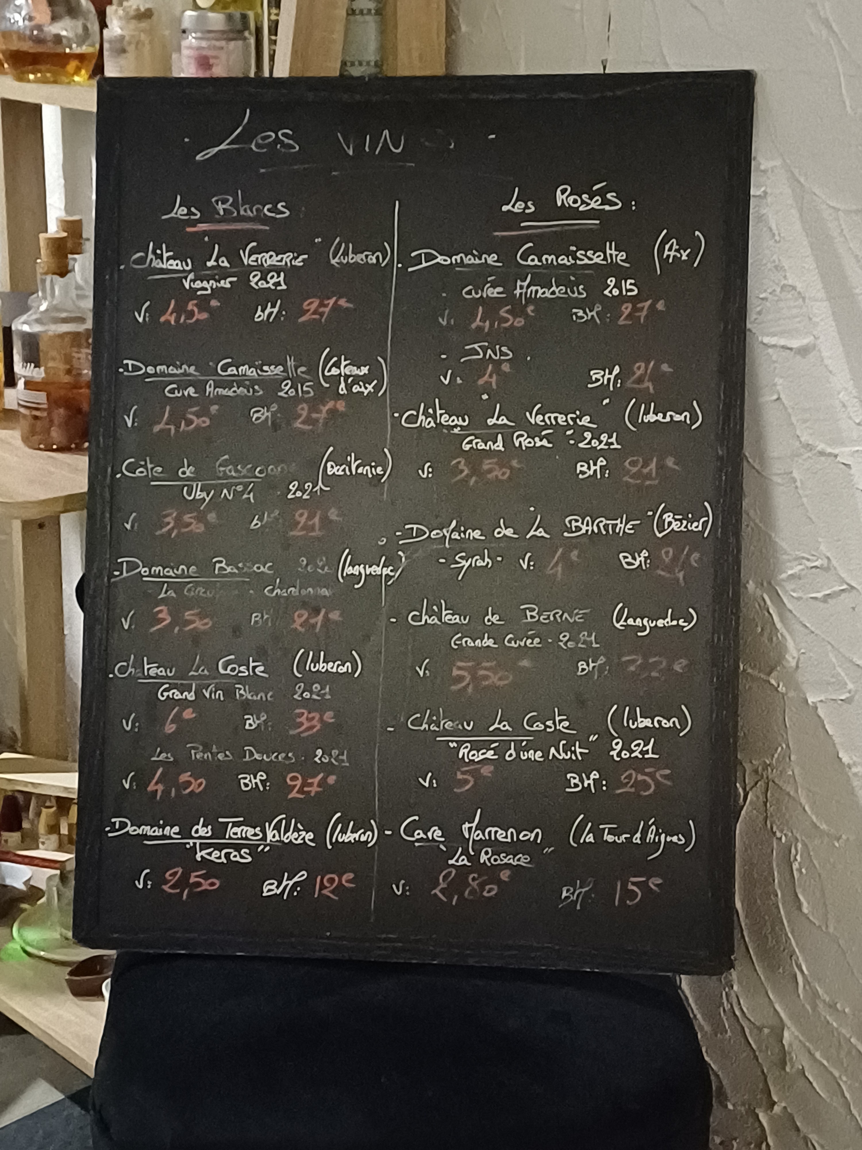 Le bar propose une carte de boisson très diversifiée et de bonne qualité. Le propriétaire réalise notamment de très bon cocktails et propose de bons vins à découvrir selon vos préférences en la matière. Le bar est très bien décoré, le mobilier est neuf mais l'atout principal du bar est incontestablement la grande terrasse cachée dans la cours qui vous offre calme et soleil lorsque la météo s'y prête