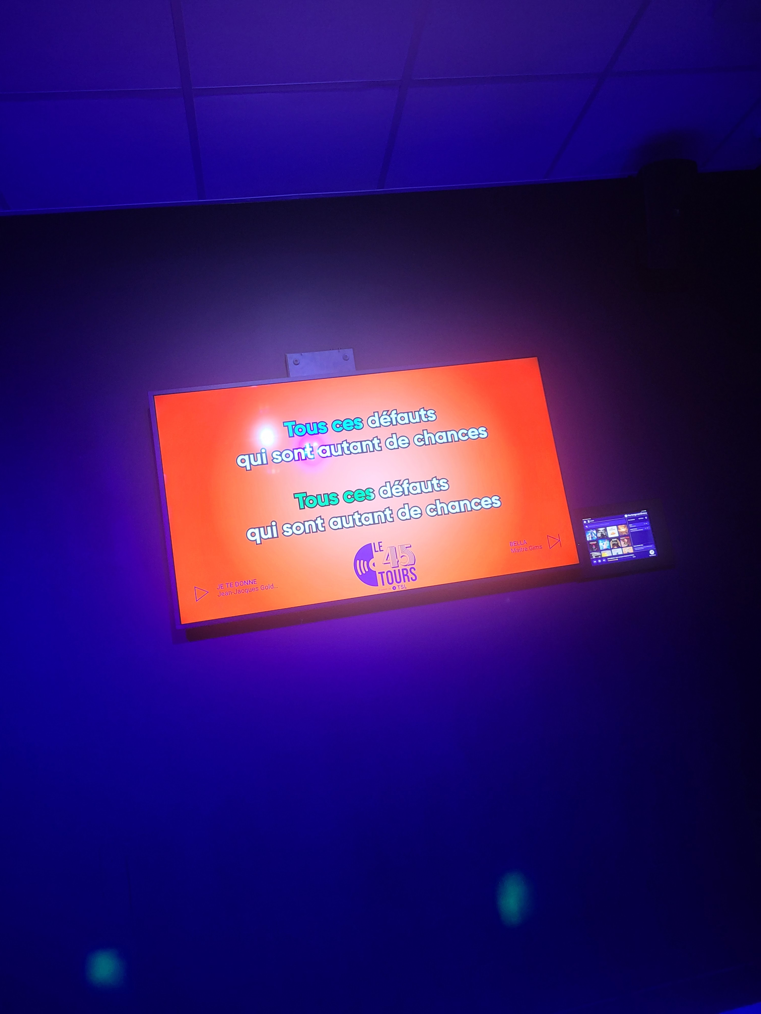 Que pourrions-nous faire après notre session escape game chez Escape Time Orléans ? . . . Mais bien sûr : Un karaoké chez Le 45 Tours à Fleury les Aubrais ! ! ! Ambiance au top Lumières au top Climatisation au top Bar avec du choix Planches bonnes Personnel aux petits soins Une belle soirée ! Merciiii beaucoup Le vrai + : Possibilité de faire des blind test avec reconnaissance vocale !!