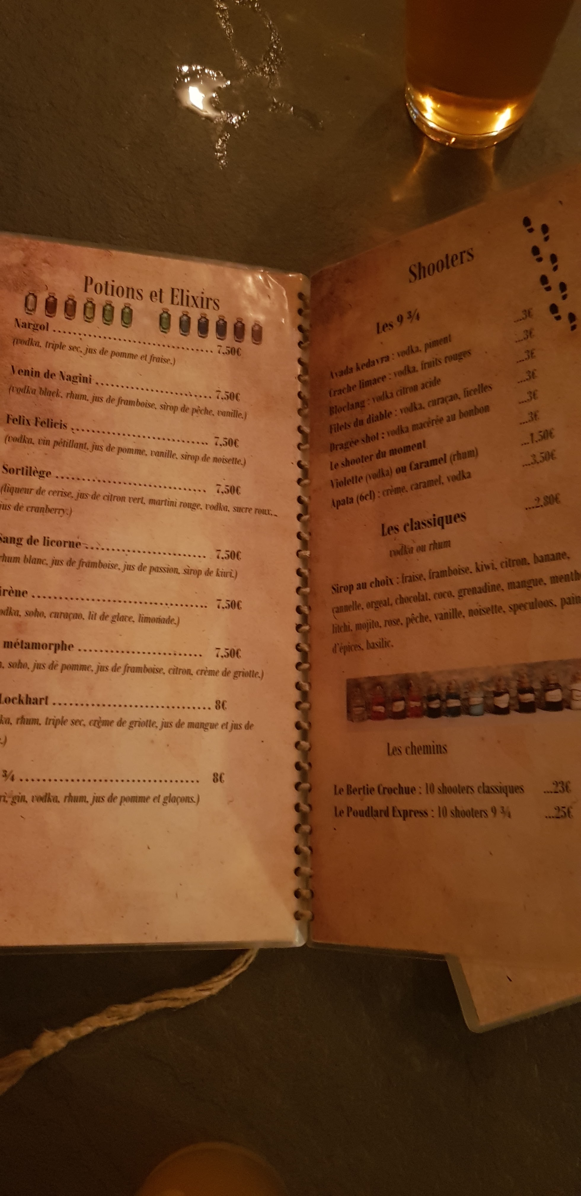 Superbe endroit où le mythe Harry Potter est vivace Une carte de boisson unique en son genre Un lieu à découvrir seul ou accompagné