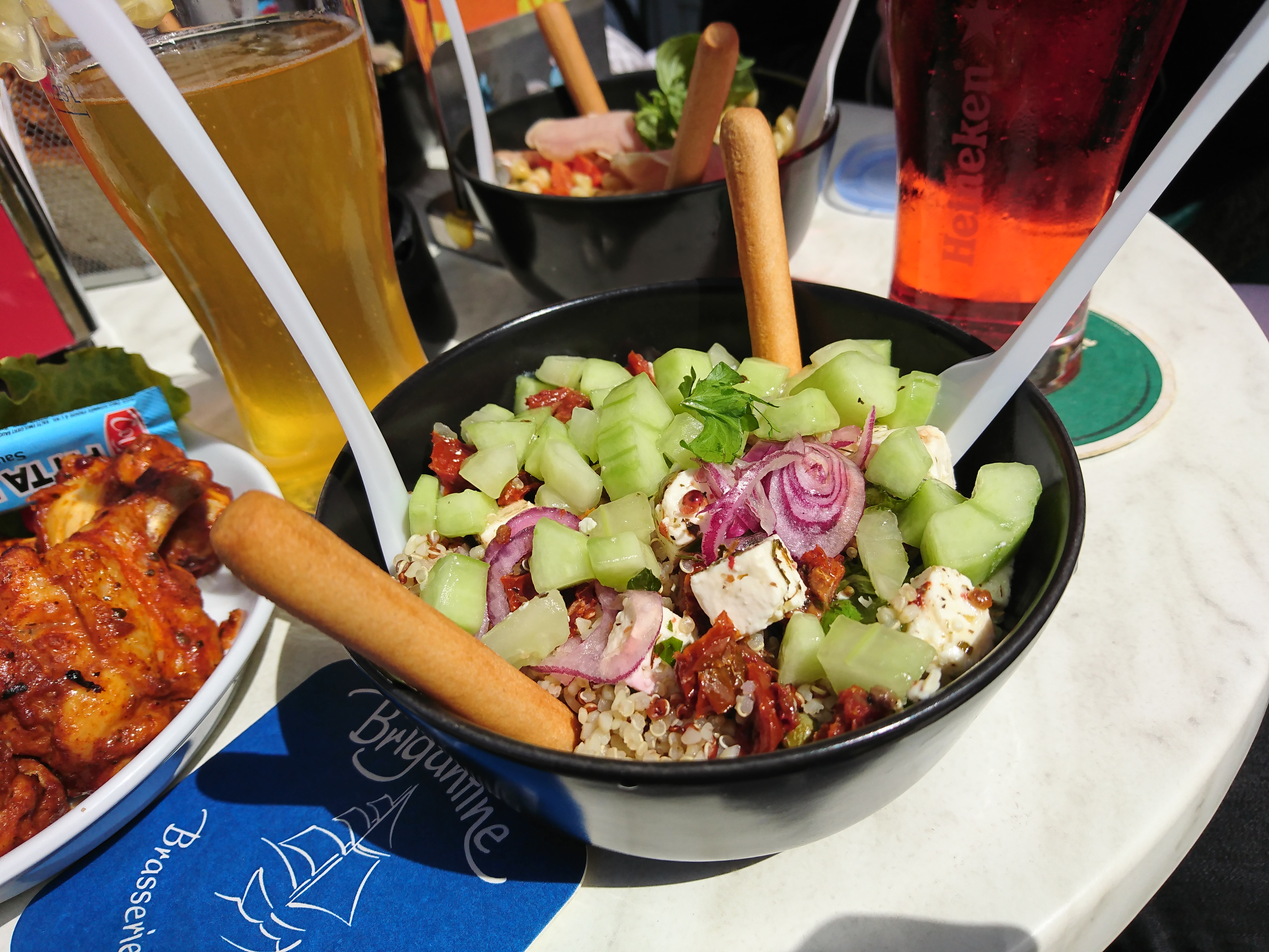 Emplacement exceptionnel, accueil sympathique. En revanche, pas d'alternative quand on est intolérant au gluten, obligé de manger une salade au mois de novembre 😱 à moins de manger le poisson sans sauce 😞 et on m'a proposé une glace 😫 pour seul dessert sans gluten... Heureusement qu'il n'y a pas de gluten dans le café et il est très bon, leur café ! Sinon, comme plat, j'ai testé la poke ball et mis à part le fait que c'était froid, c'était frais et délicieux , très créatif !