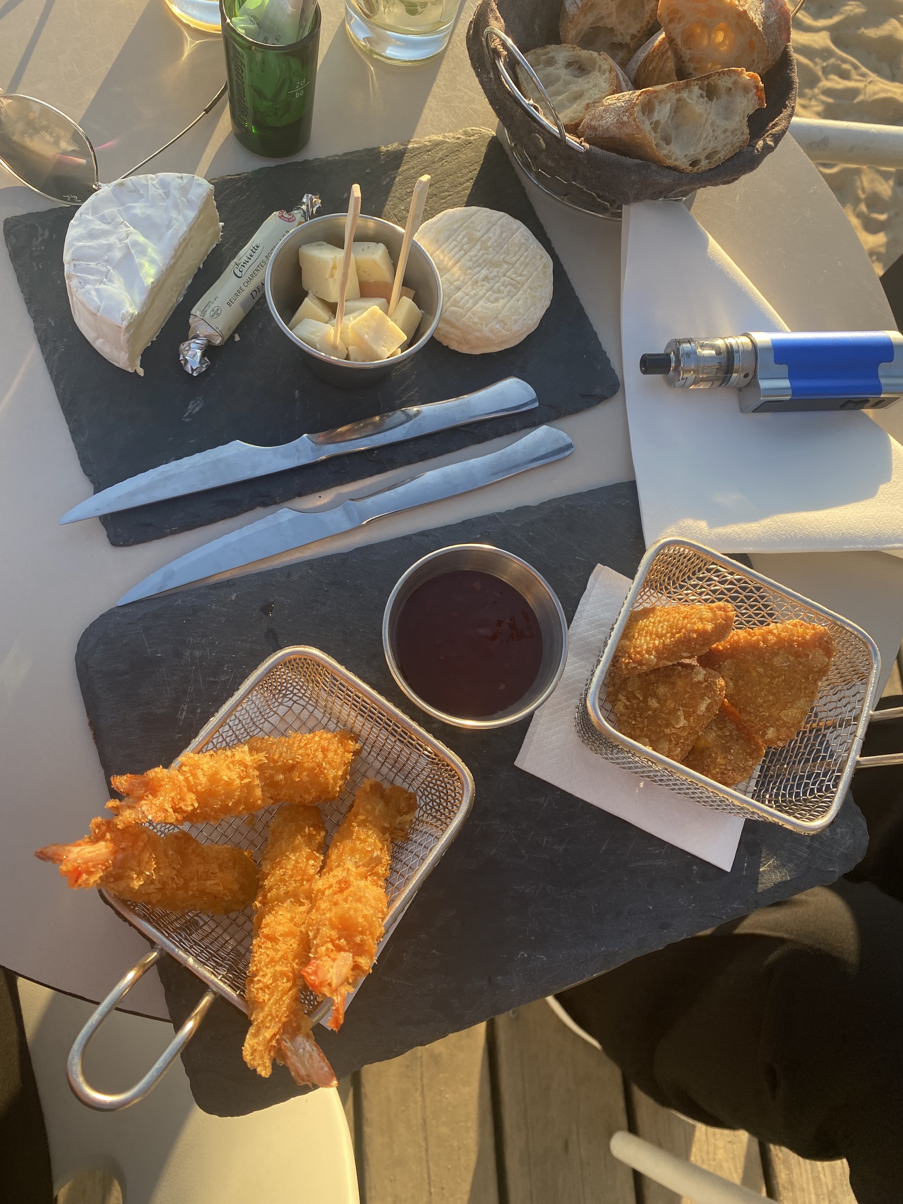 Au bord de la plage, agréable moment en terrasse,sous le soleil, l'ambiance est chaleureuse et on prend le temps de vivre autour d'une planche de fromages ou de charcuterie, on y reviendra entre amis, c'est sûr !