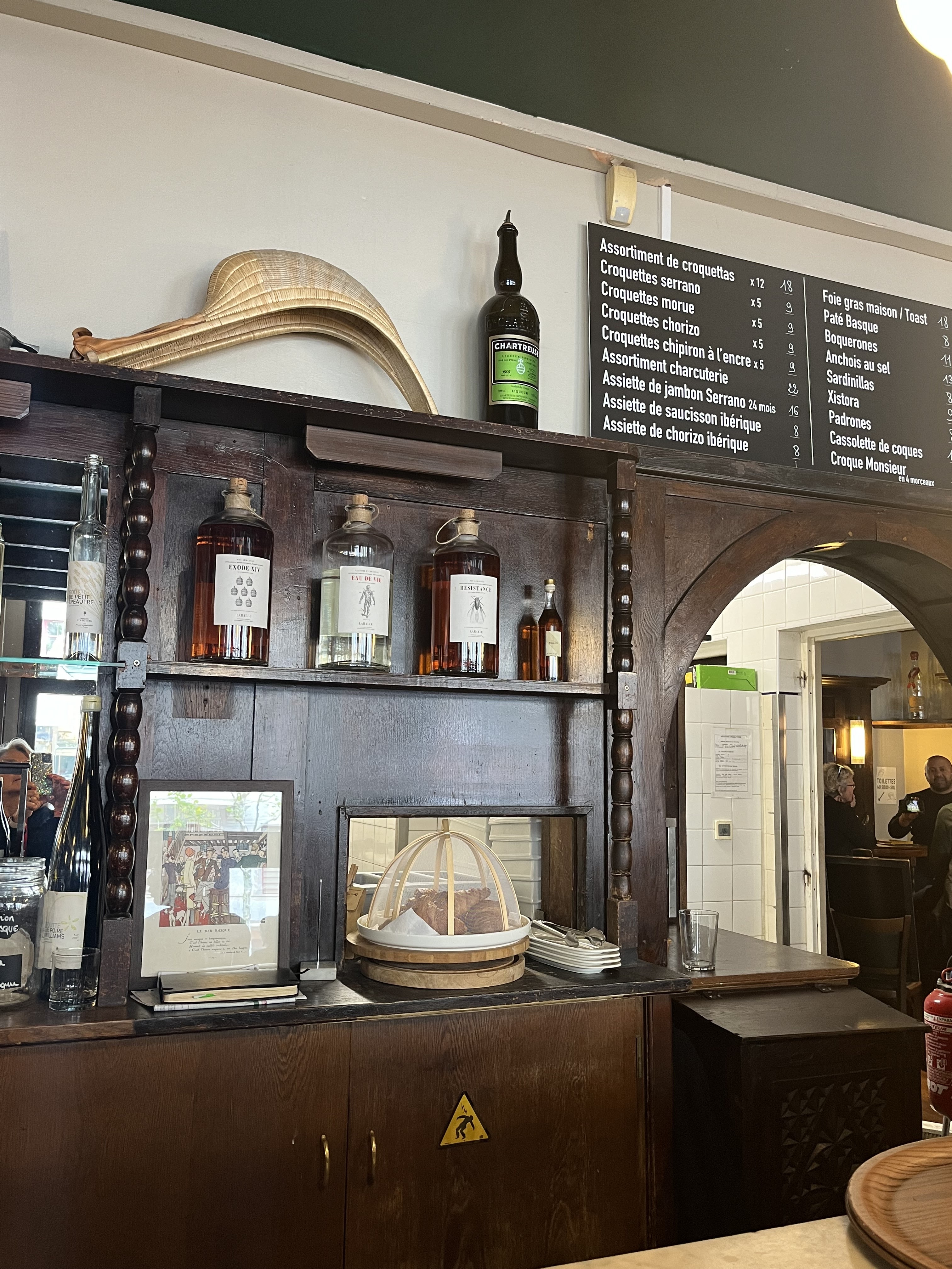 Très sympa pour prendre un verre/manger (délicieux croque monsieur et croquettes) en se plongeant dans l’atmosphère basque. Serveur très efficace et sympa.