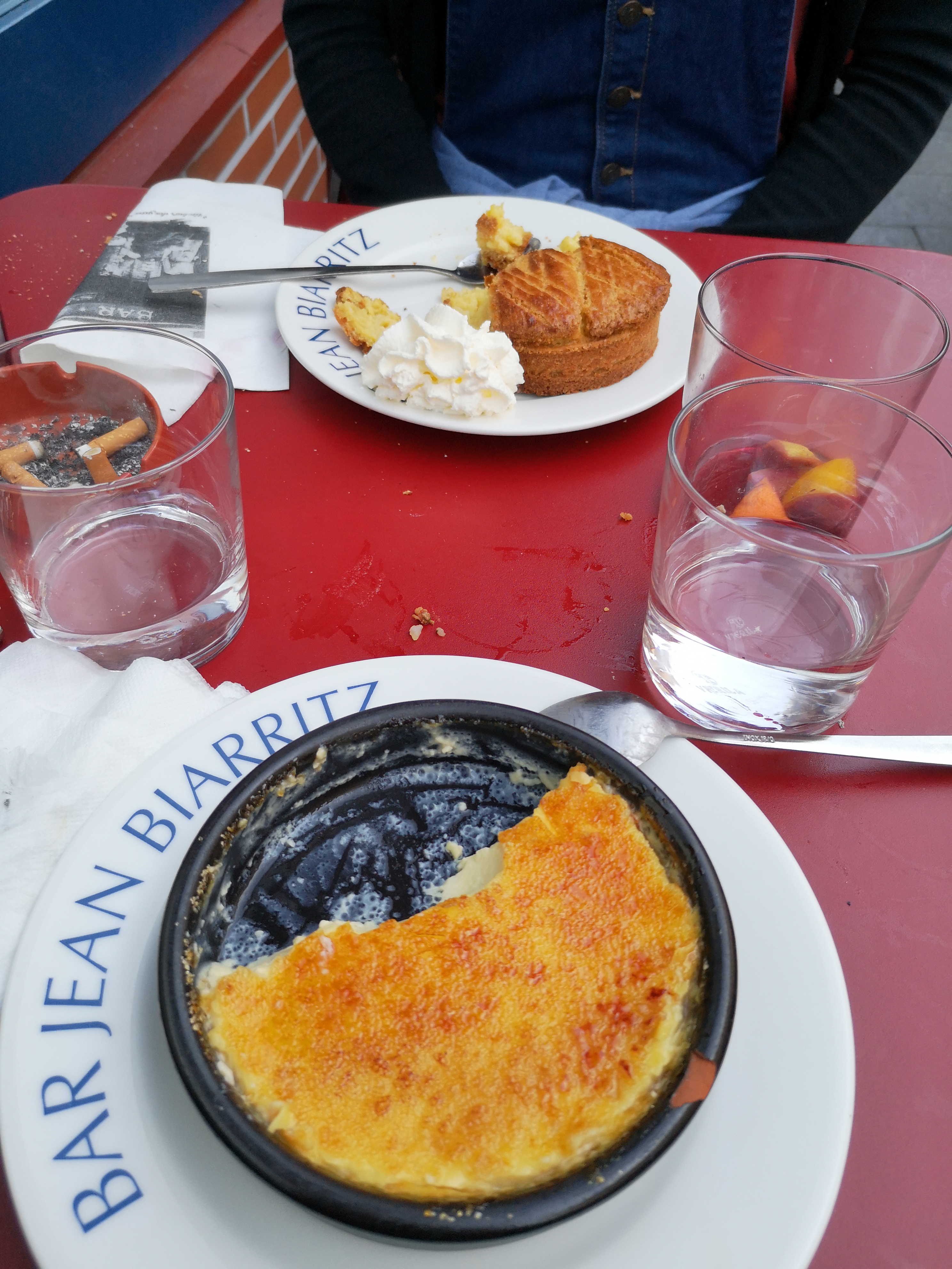 Aïe aïe aïe... Je suis très embêté! Mon avis sera nuancé voire contradictoire, vous voilà prévenus. Certains plats s'apparentent à de la grosse cavalerie, souvent gras et baignant dans l'huile. La sangria, bof! Les frites, hum hum. La crème brûlée, bonne. D'autres plats, plus ou moins savoureux. Les serveurs garçons sont des amours, speed mais aux petits soins (notamment Soren). Peut-être une manière de compenser le reste. Nous y retournons de temps à autre, de passage sur Biarritz. Cette institution n'est plus ce qu'elle était, peut-on lire ici et là. Non basques, jamais nous n'avons ressenti le moindre malaise sur le sujet! Les prix un chouïa élevés pour la qualité proposée. Allez, épatez-nous la prochaine fois! 🤞
