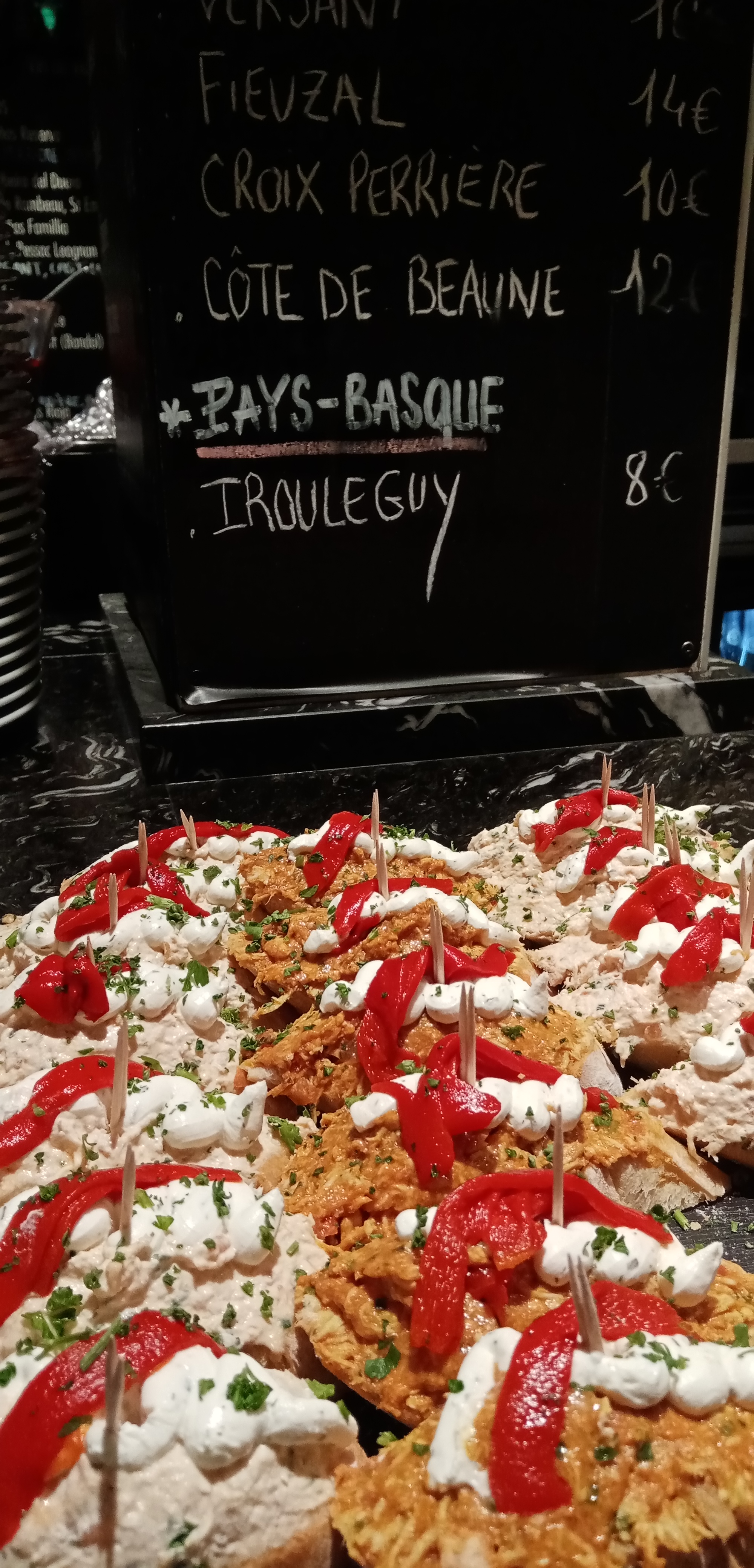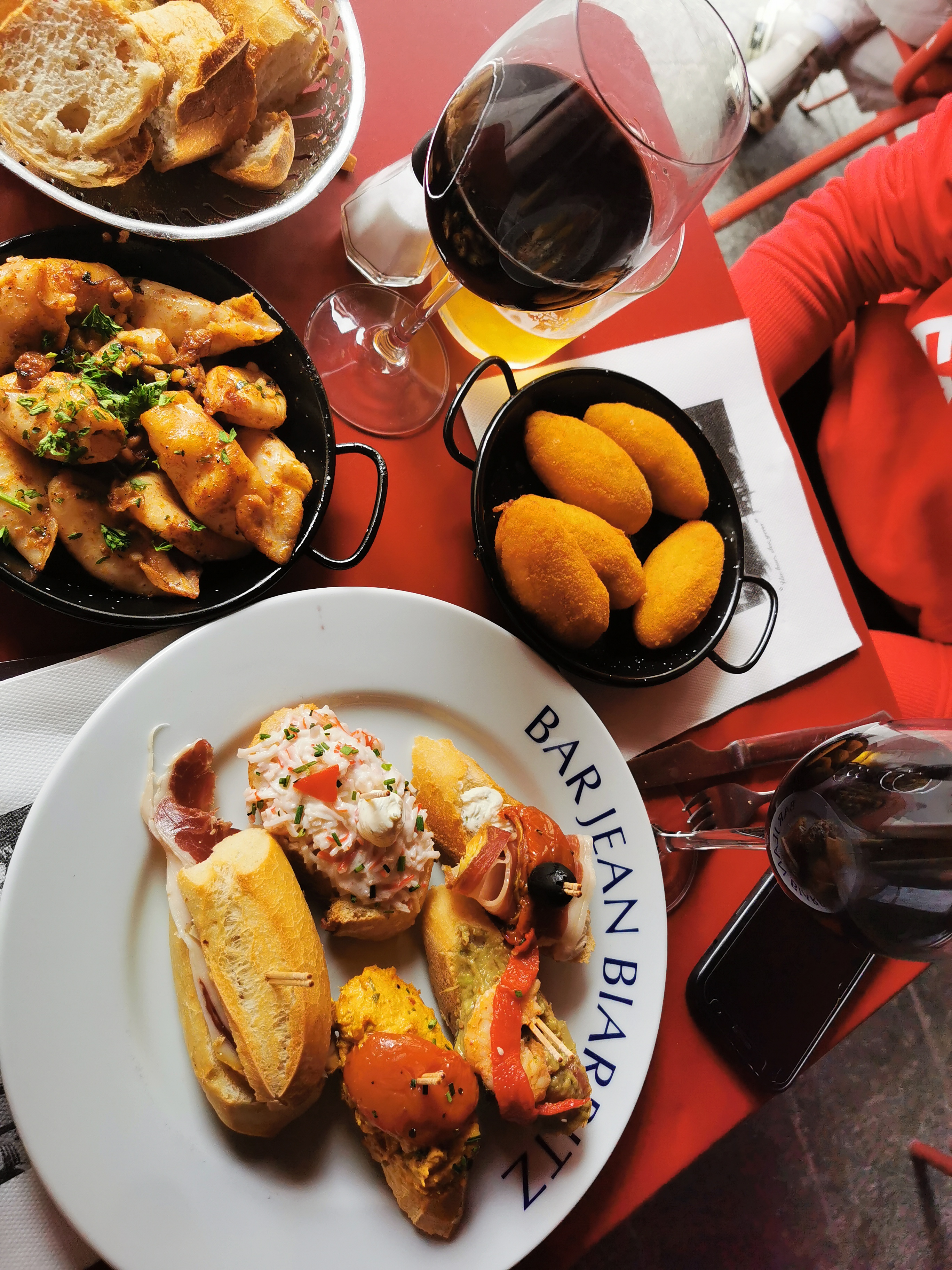 quelle belle ambiance 😀 ! l'un des meilleurs de Biarritz. le personnel est super. -des tapas typiques basques ! vous devrez peut-être les manger sans avoir de place appropriée (très occupé en haute saison) - la qualité de la nourriture pourrait être meilleure (ingrédients parfois peu coûteux / pain mouillé...) mais l'ambiance est géniale et en vaut clairement la peine !!