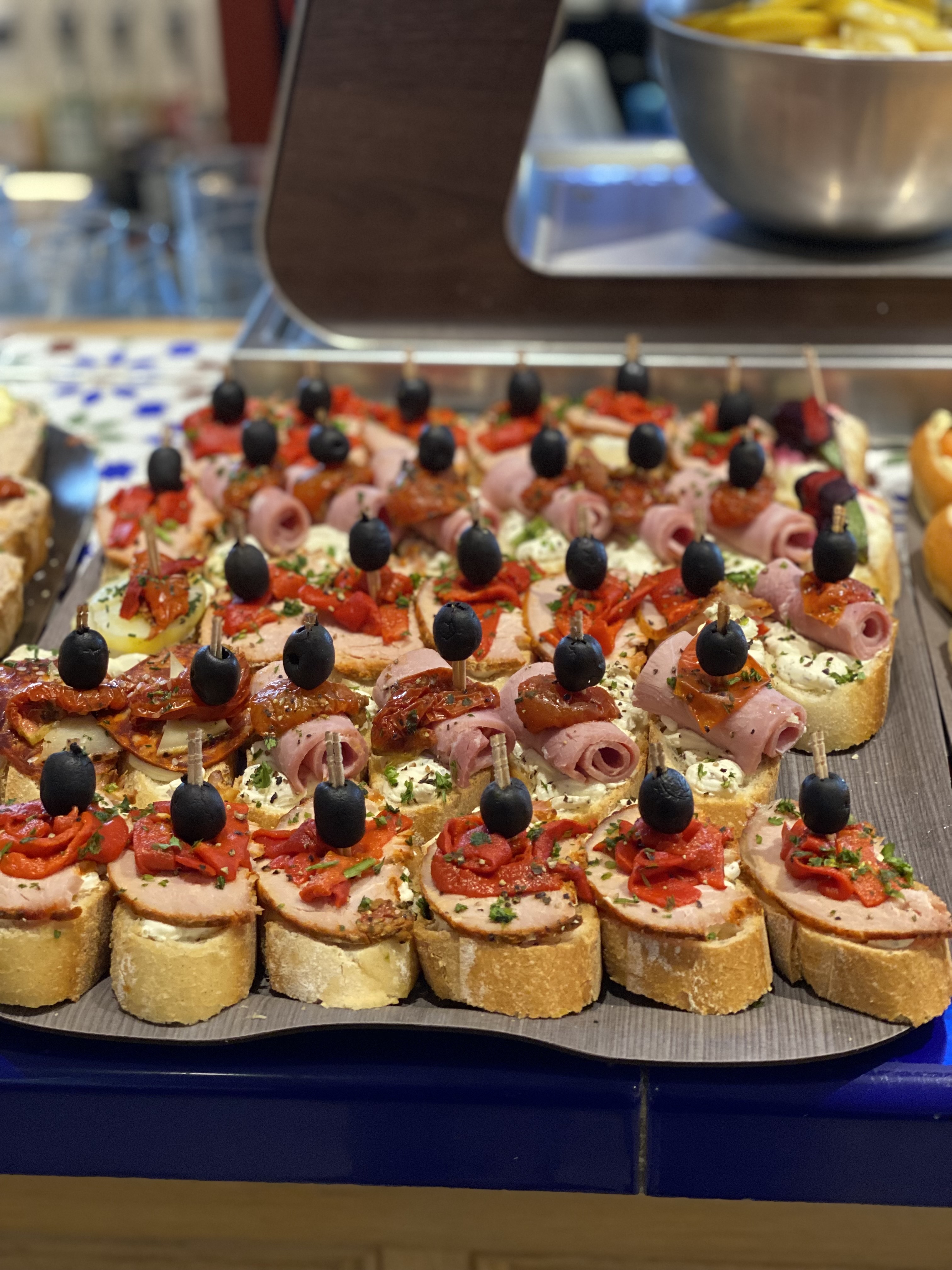 À éviter! Trop cher pour ce que c’est! Le sol était collant, le dessous de la table et du banc aussi (alors qu’il était env 20:00). €26 pour un peu de jambon (de qualité moyenne) et deux tranches de pain avec un peu de tomates dessus; €18 pour quelques petites tranches de fromage et une salade un peu plate… €10 pour 4 croquettes (nettement moins bonnes qu’à une adresse un tout petit peu plus loin). Nous avons donc décidé de limiter nos dépenses et de ne prendre que quelques tapas. Les enfants avaient faim et c’est pourquoi nous sommes restés. Le service était correct.