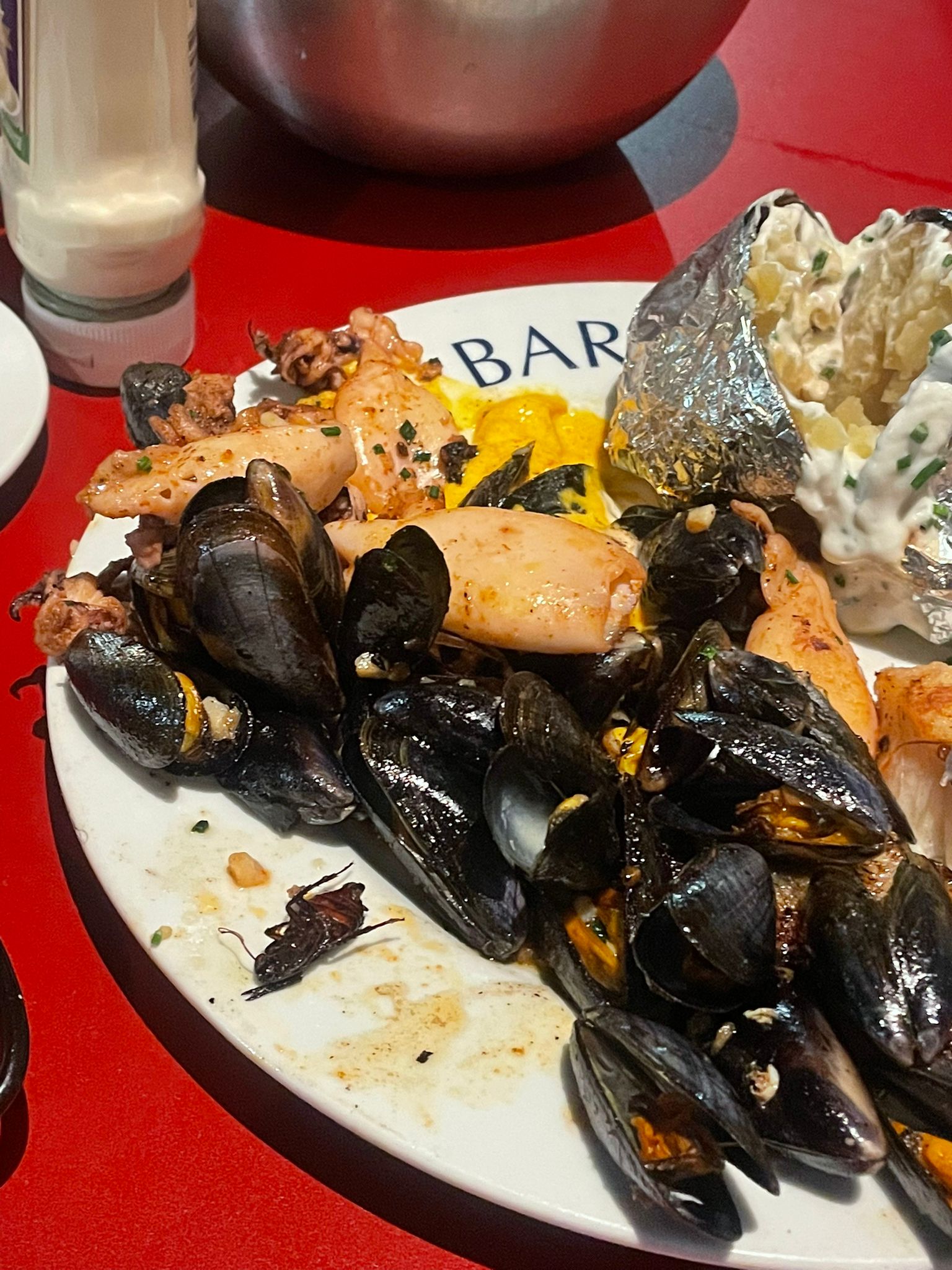 Délicieuses crevettes et calamars. J'ai eu de meilleures palourdes mais elles étaient ok ? ambiance super sympa !