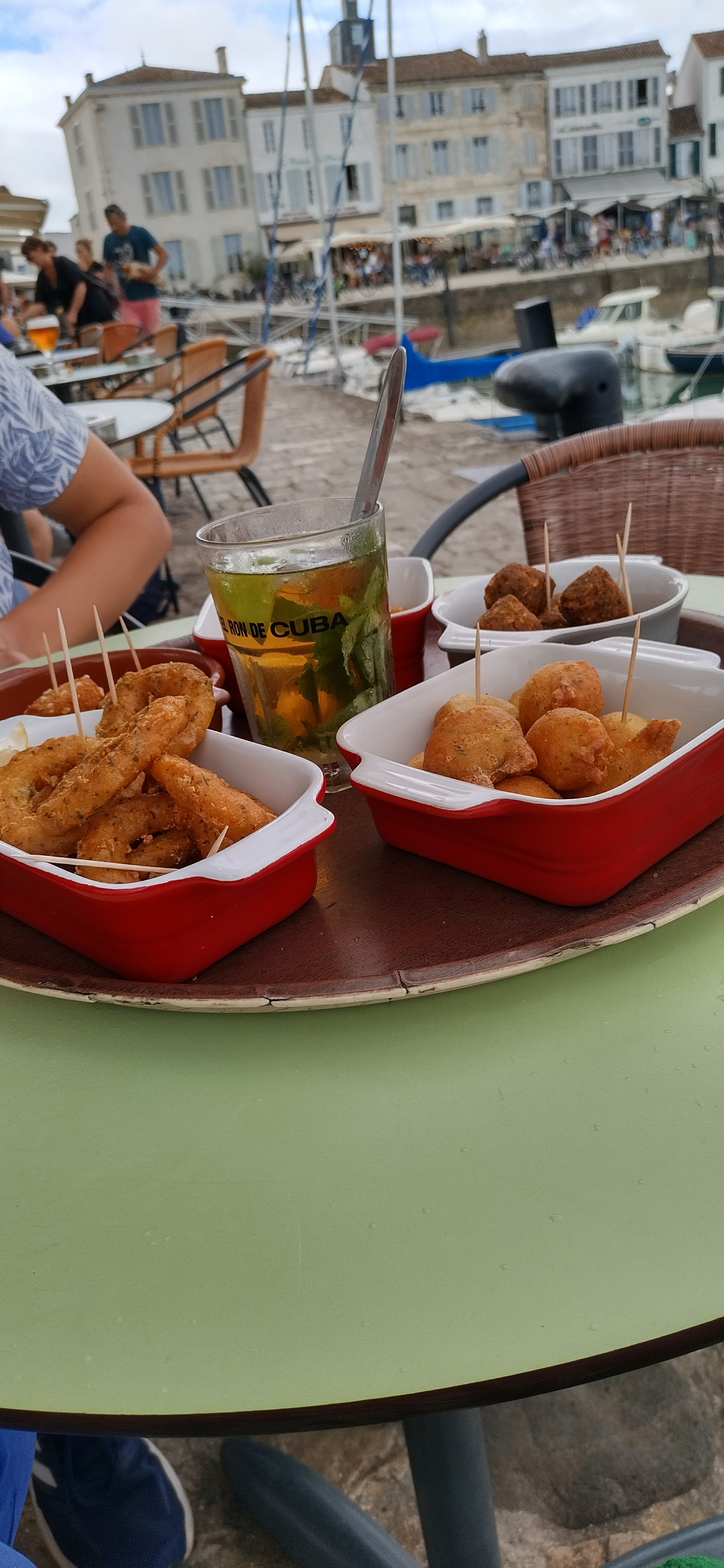 Bon spot sur l'île de Ré. Tapas servies sur le port. Juste parfait.