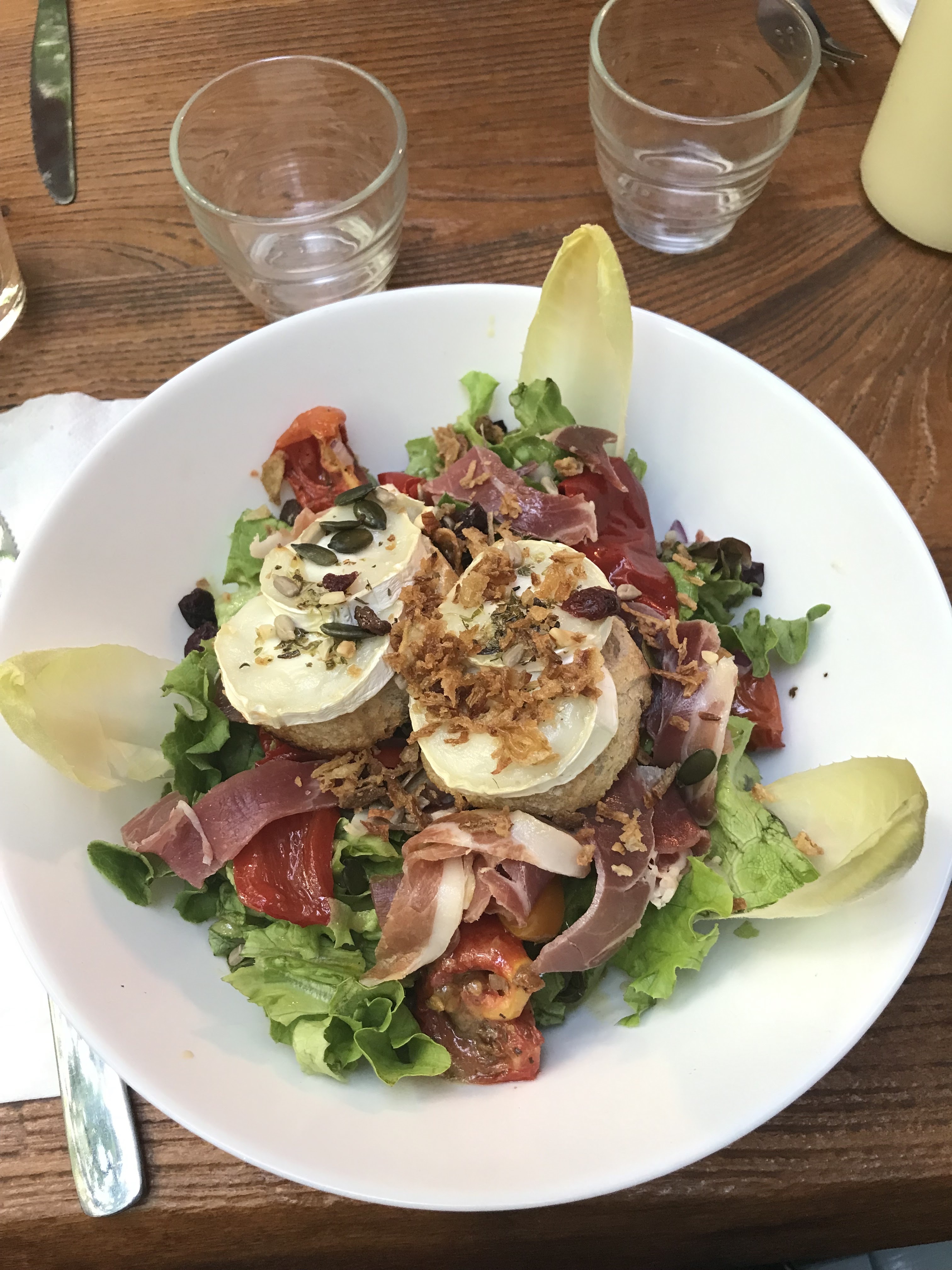 Lieu atypique. Service Agréable. Cuisine originale pour les salade mais très bonnes. Salade servie avec des frites. Très bonne idée...pour les gourmands.