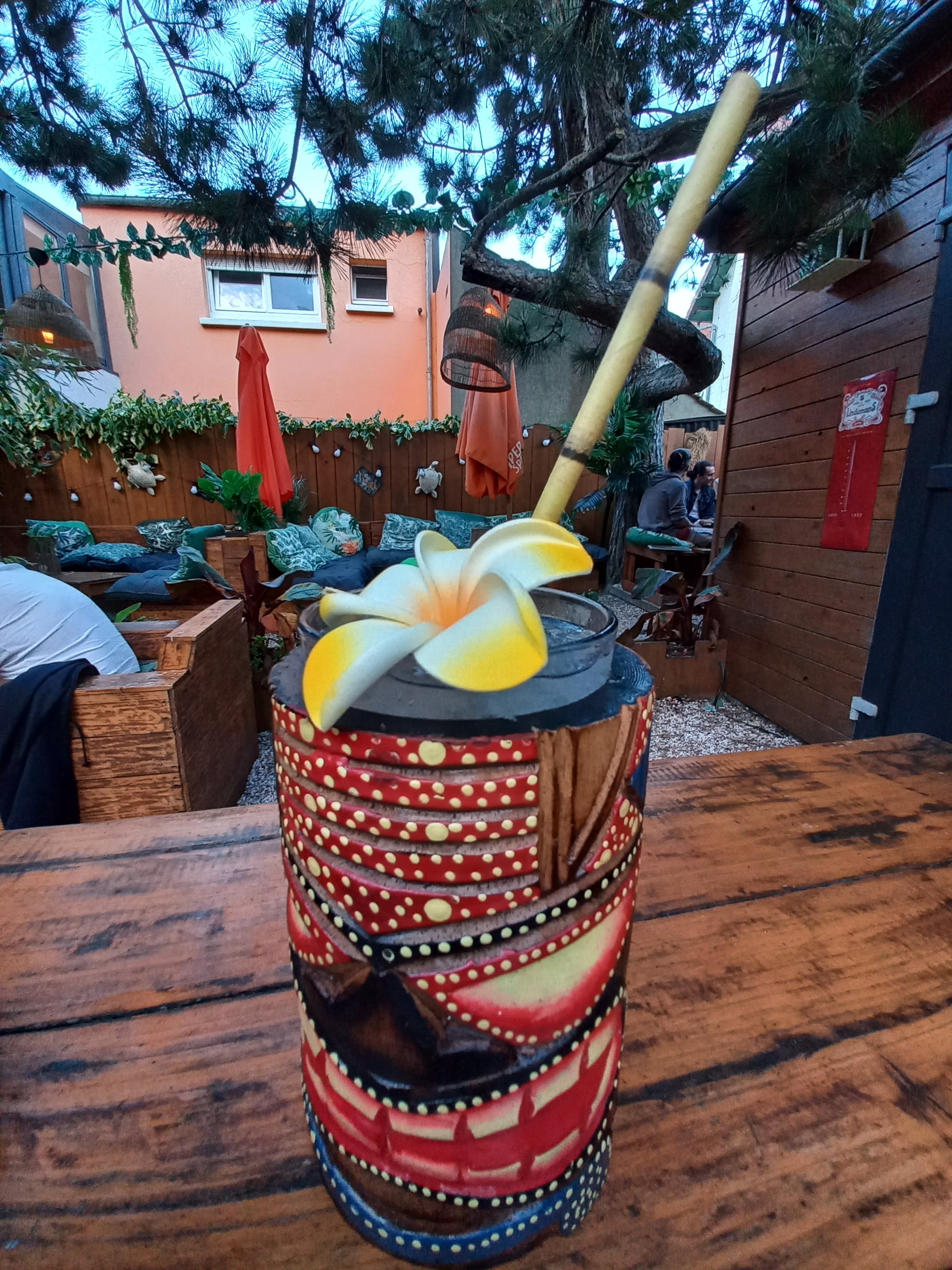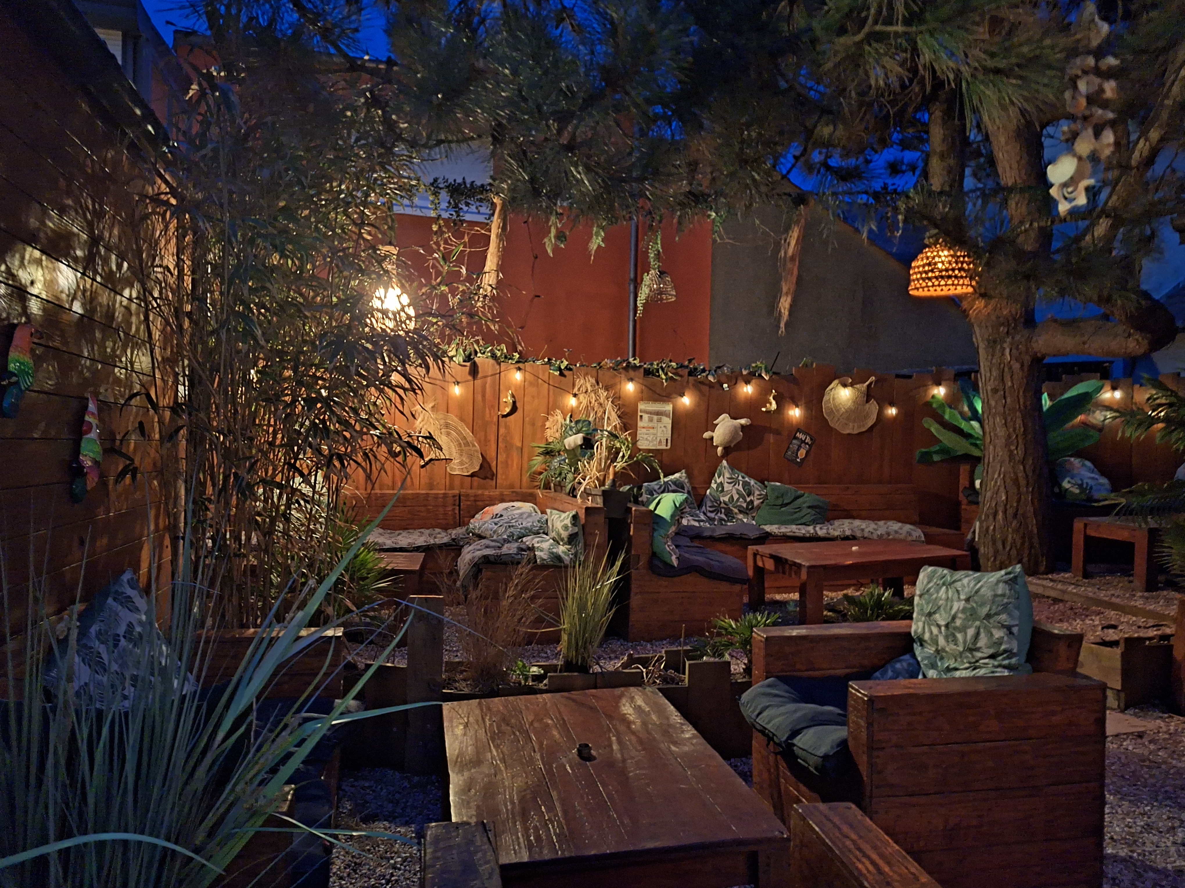Bar à cocktails, dans cadre exotique. Personnel très accueillant et chaleureux, Nous avons pu profiter de la terrasse qui se trouve à l'arrière du bar grâce à la température estivale de cette mi-Septembre.