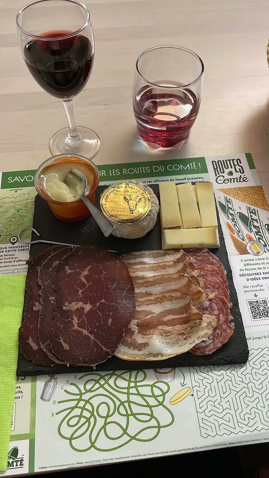 Lieu calme + un passion pour les fromages, saucissons et vins de Franche Comté.