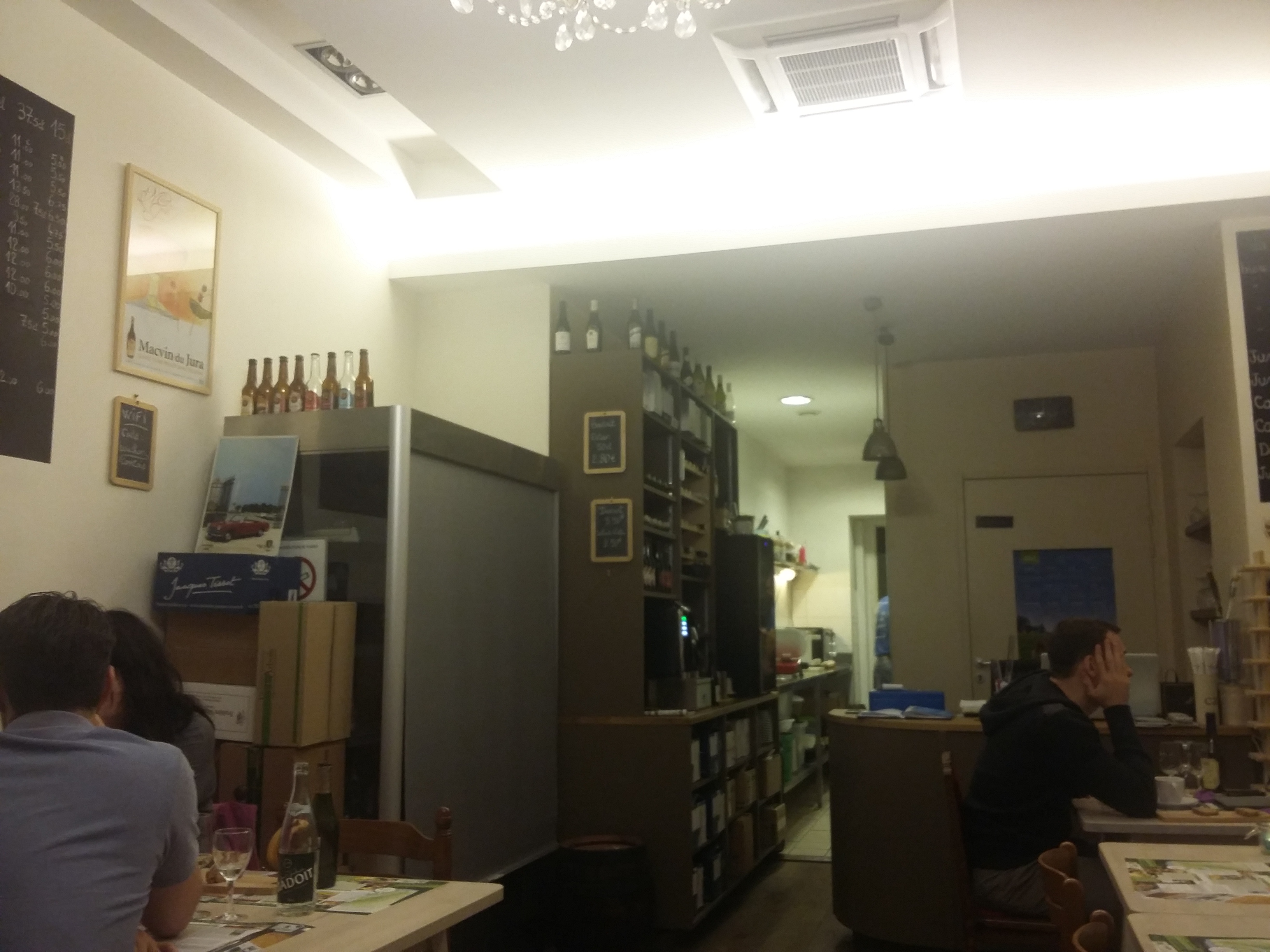 Le salon est simple mais proprement organisé. Nous sommes arrivés dès l'ouverture de la maison et avons été accueillis par le propriétaire avec une grande cordialité. La maison propose des produits (vins, fromages, charcuteries...) issus d'une région spécifique de France : le Comté. Le plateau de charcuterie et fromage était magnifique : des produits venant directement des producteurs sans aucun intermédiaire. La qualité de la bande-son mérite d'être soulignée. Bon prix compte tenu de la qualité des produits proposés. Endroit à revenir et à recommander.