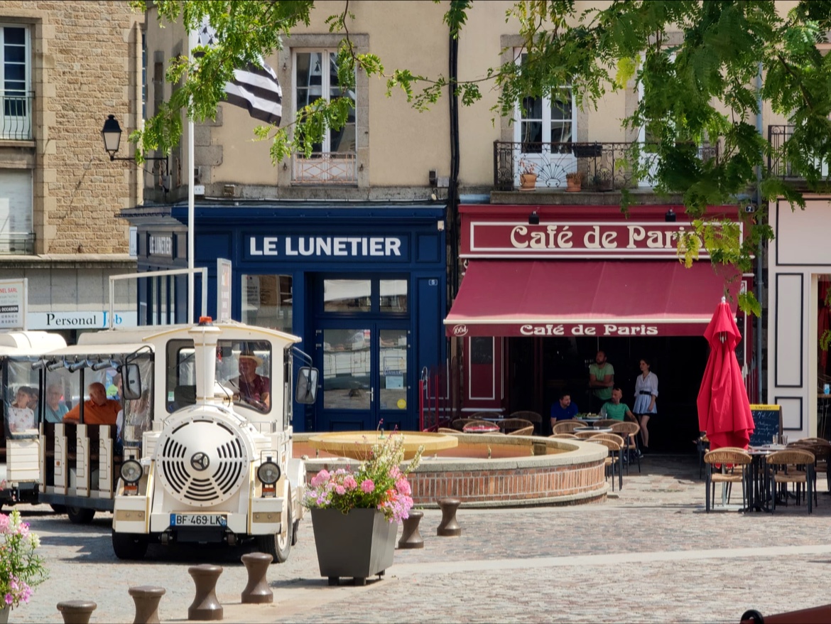 Café sympathique. Mais terrasse à l'ombre le matin. Belle vue sur la place centrale de Fougères.