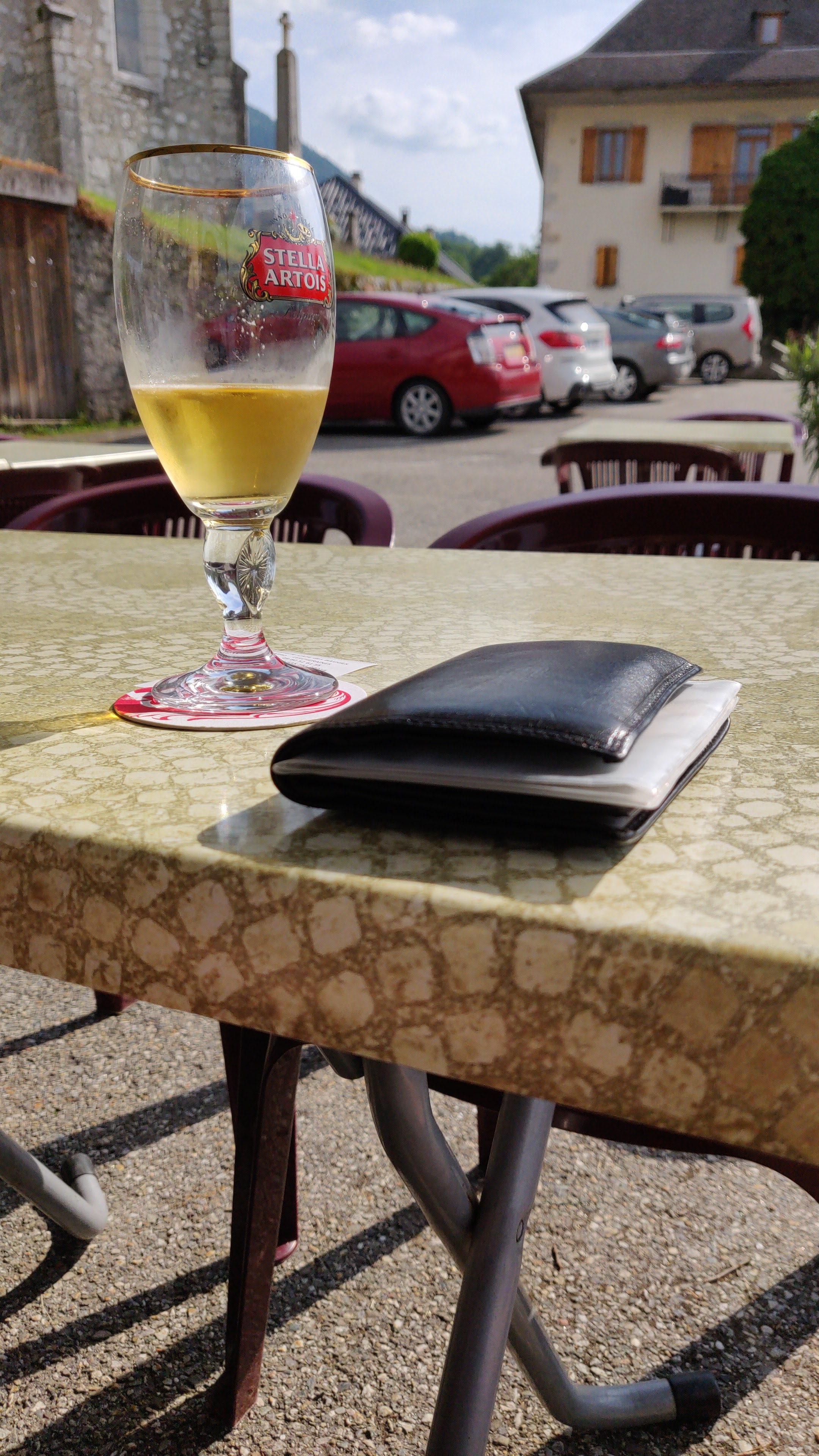 Localisation sympa au cœur du village à côté de l’eglise. De prime abord ça donne envie de s’installer en terrasse (fleurie). Accueil sympa mais bon sans plus non plus. Par contre, aucune carte, aucun tarif affiché même à l’exterieur. Une note assez salée pour deux bières pression de 25cl chacune : une stella (c’est pas la bière la plus chère du marché ni celle qui vous fait tomber de votre chaise !!) et une baujue (bière locale ambrée, pas mauvaise mais bon c’est pas non plus la bière du siècle !!) et le tout pour 11,50€ !! Un peu attrapé-touriste ! La prochaine fois on ne s’y arrêtera pas ! 👎🏻👎🏻