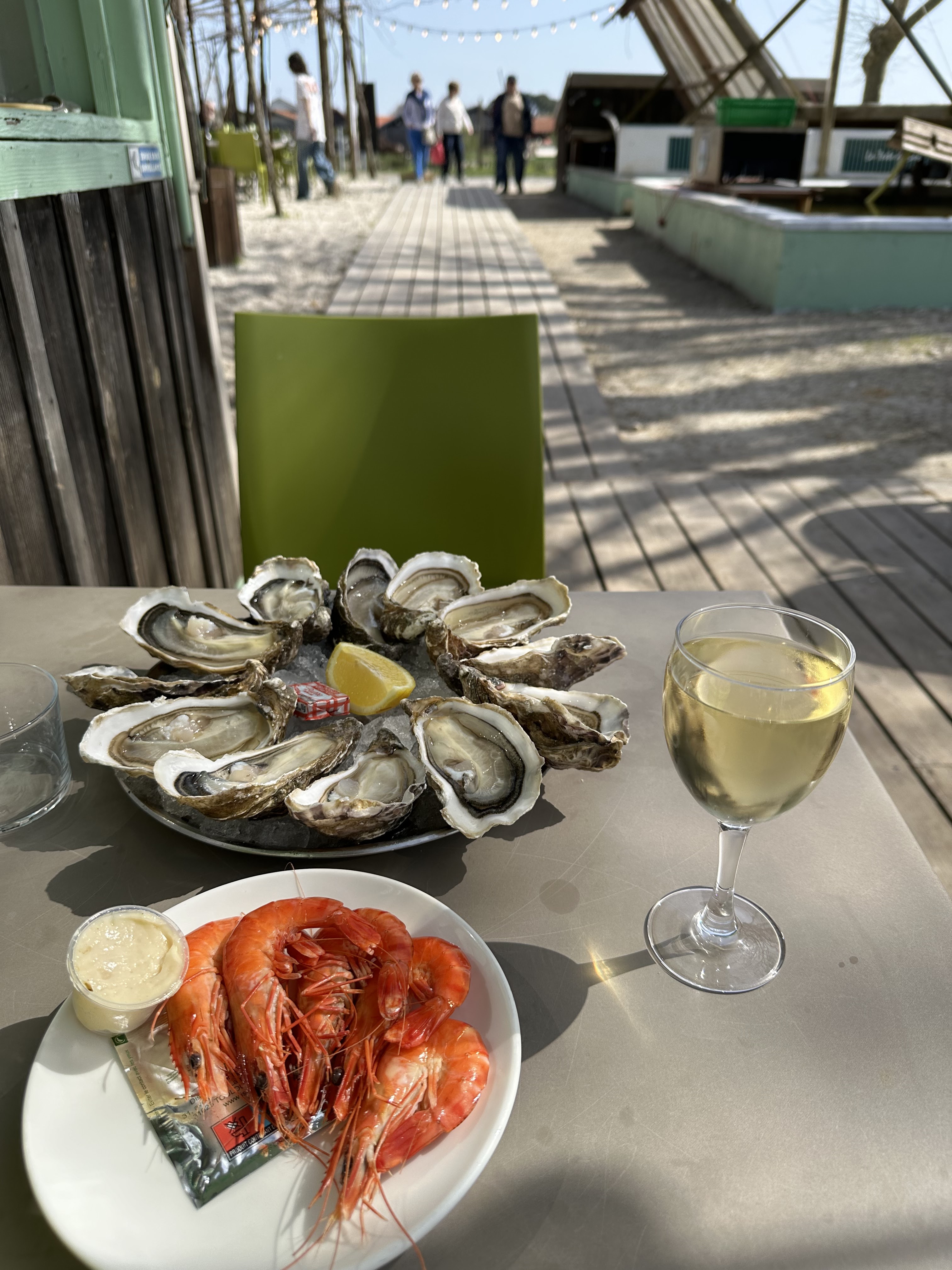 Très bonnes huîtres avec son fameux verre de vin frais, une délice pour les autres crevettes, pâtes...