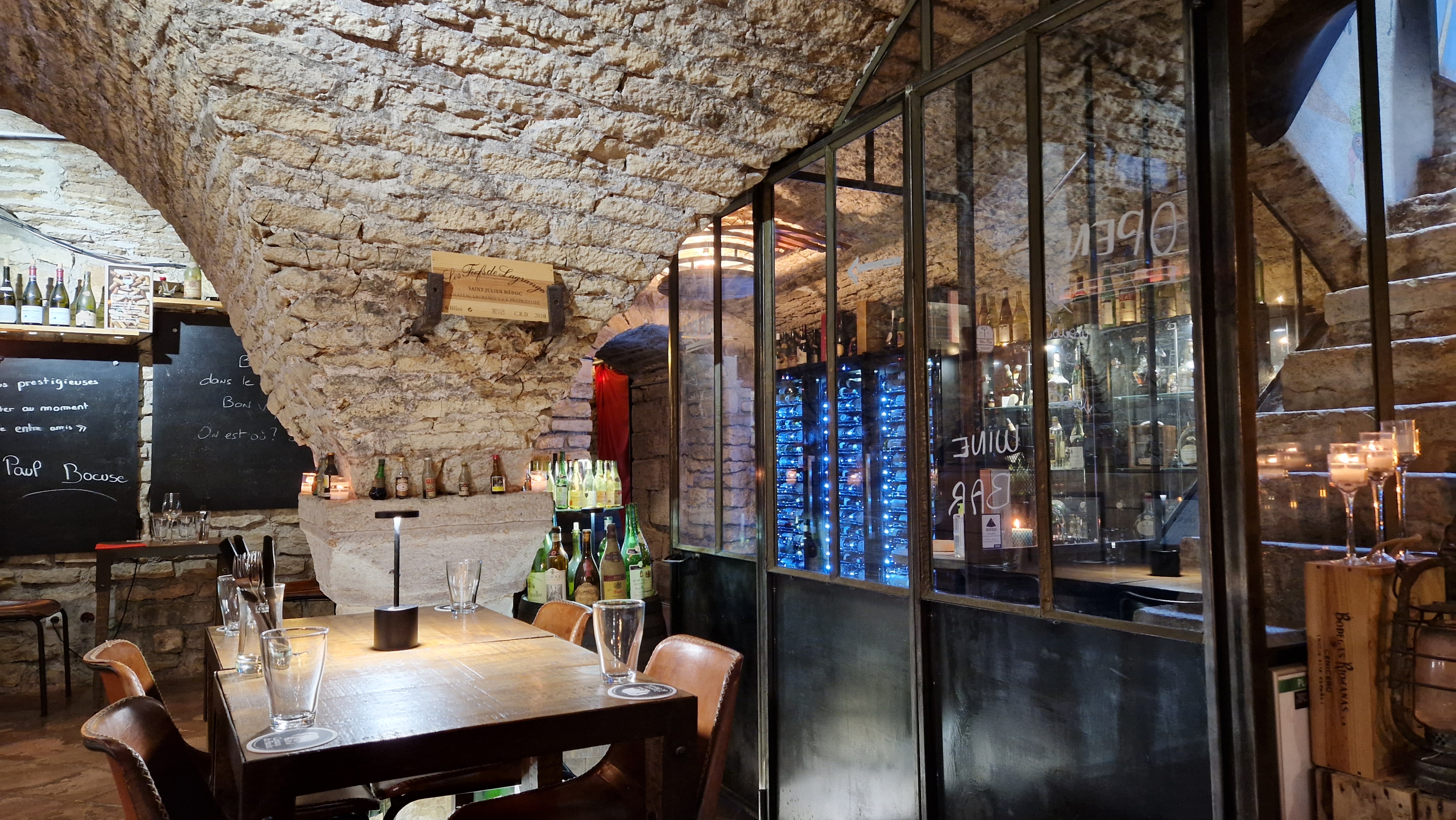 Lieu très bien agencé et décoré, confortable. Véritable cave ancienne Personnel aimable et serviable. Réservé aux personnes valides car très grand escalier en pierre très raide.