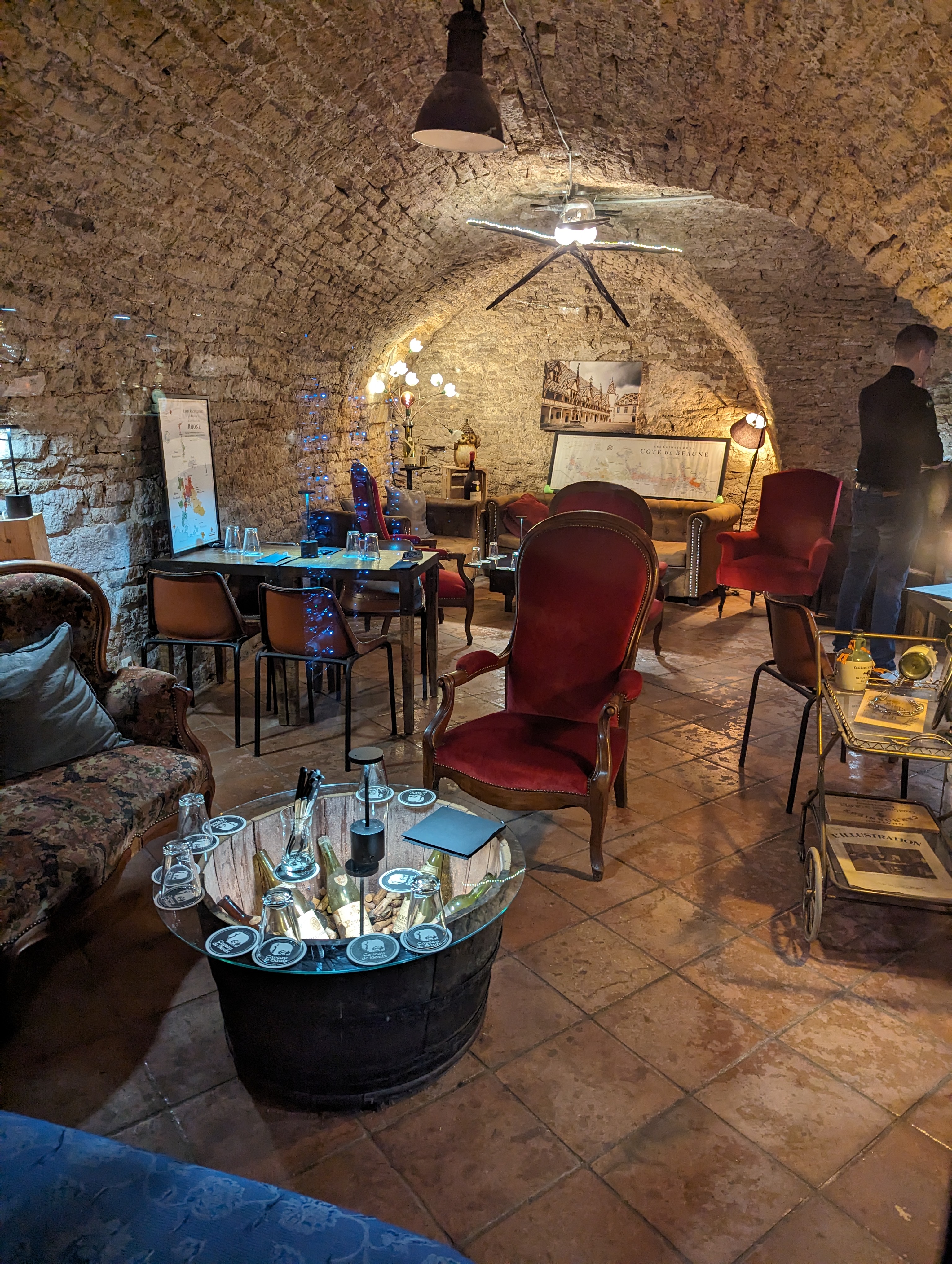 Quelle expérience incroyable !! Tout démarre dans une descente dans l’antre d’un caveau d’un ancien hôtel datant du 16 eme siècle , on est déjà dans l’ambiance. Lumière tamisée , musique agréable , on nous fait asseoir dans des canapés anciens avec un accueil des plus chaleureux. Et la commence une expérience unique selon moi en France et certainement au monde , de déguster des vins anciens à l’aveugle et de partager mes émotions et mes maigres connaissances sur le sujet. Arrive Olivier , un pur bourguignon , avec une gentillesse et une passion pour le vin que je n’avais jamais ressenti , il prends du temps malgré le monde pour nous expliquer cette dégustation et à chaque verre , des explications sur ce qu’on nous venions de boire, en essayant de trouver la région , le cépage , l’année , j’ai été surpris de nombreuses fois. Nous avons passé 5 heures à boire des grands crus , des vieux millésimes , accompagné d’une incroyable planche de fromage et de charcuterie , ces heures nous ont parus des minutes. Je reviendrai très rapidement pour revivre ce moment d’une vie et j’encourage tout le monde à rencontrer Olivier et son équipe , merci ,et encore merci pour ce moment incroyable. Vive le vin , vive la bourgogne, vive les bourguignons.🇫🇷🇫🇷 Ps on déguste également des vins d’autres région 😉