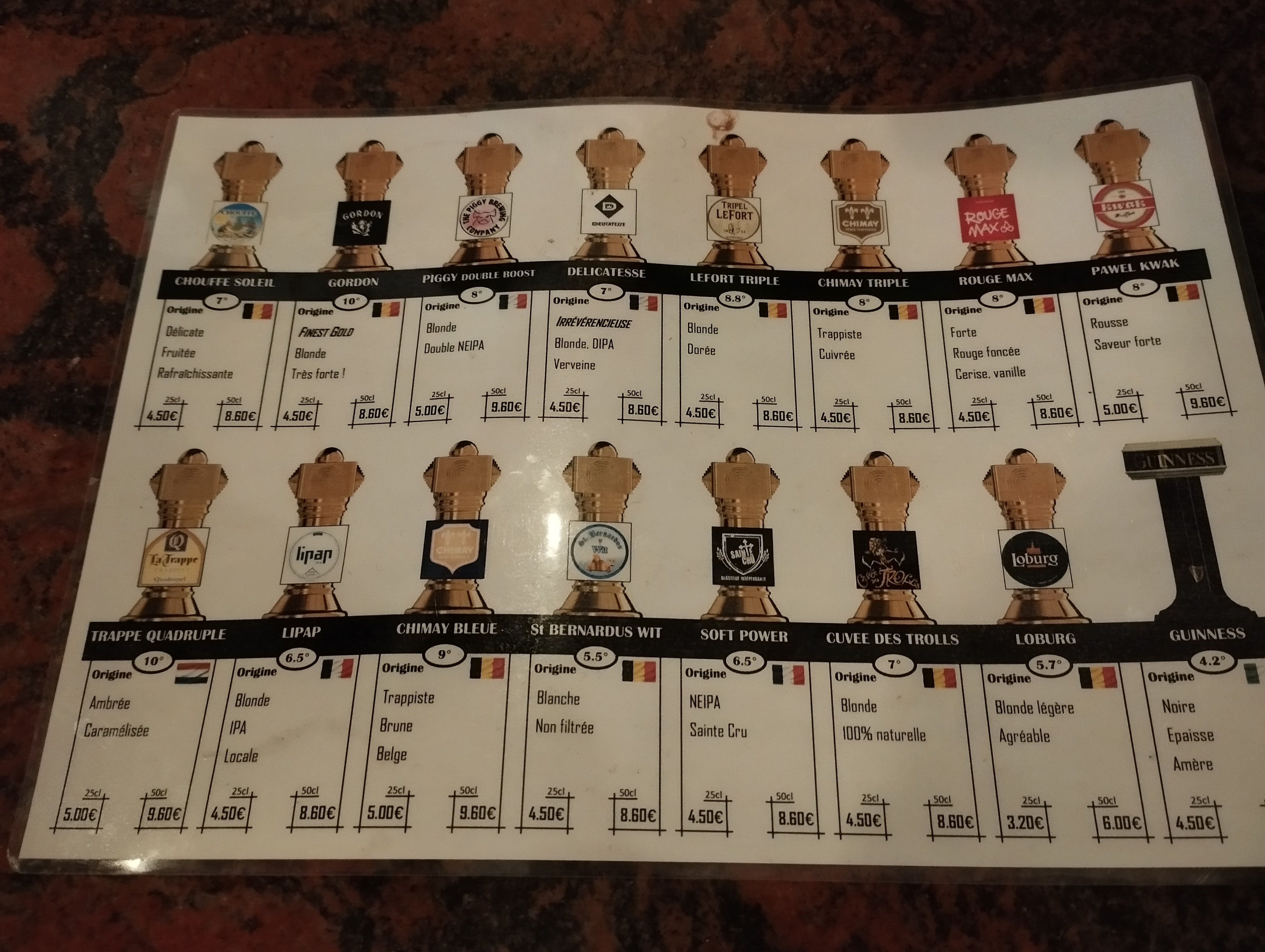 Pas mal de bières belges. Mais il y a des bières artisanales du coin et d'autres régions et c'est pas mal.