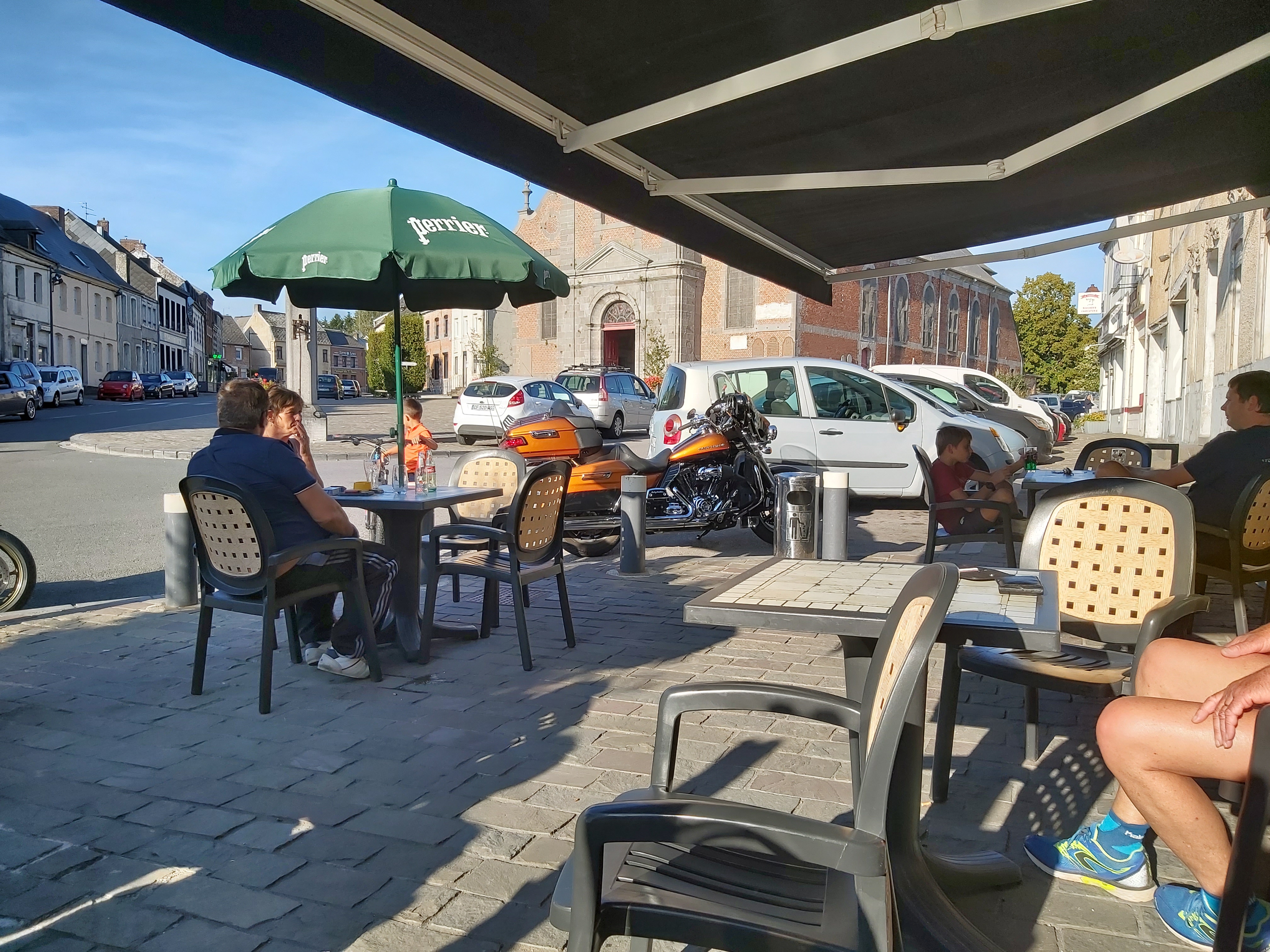 Sur la terrasse, avec l'église devant une bonne bière dans la bouche ... C'est un bon moment !