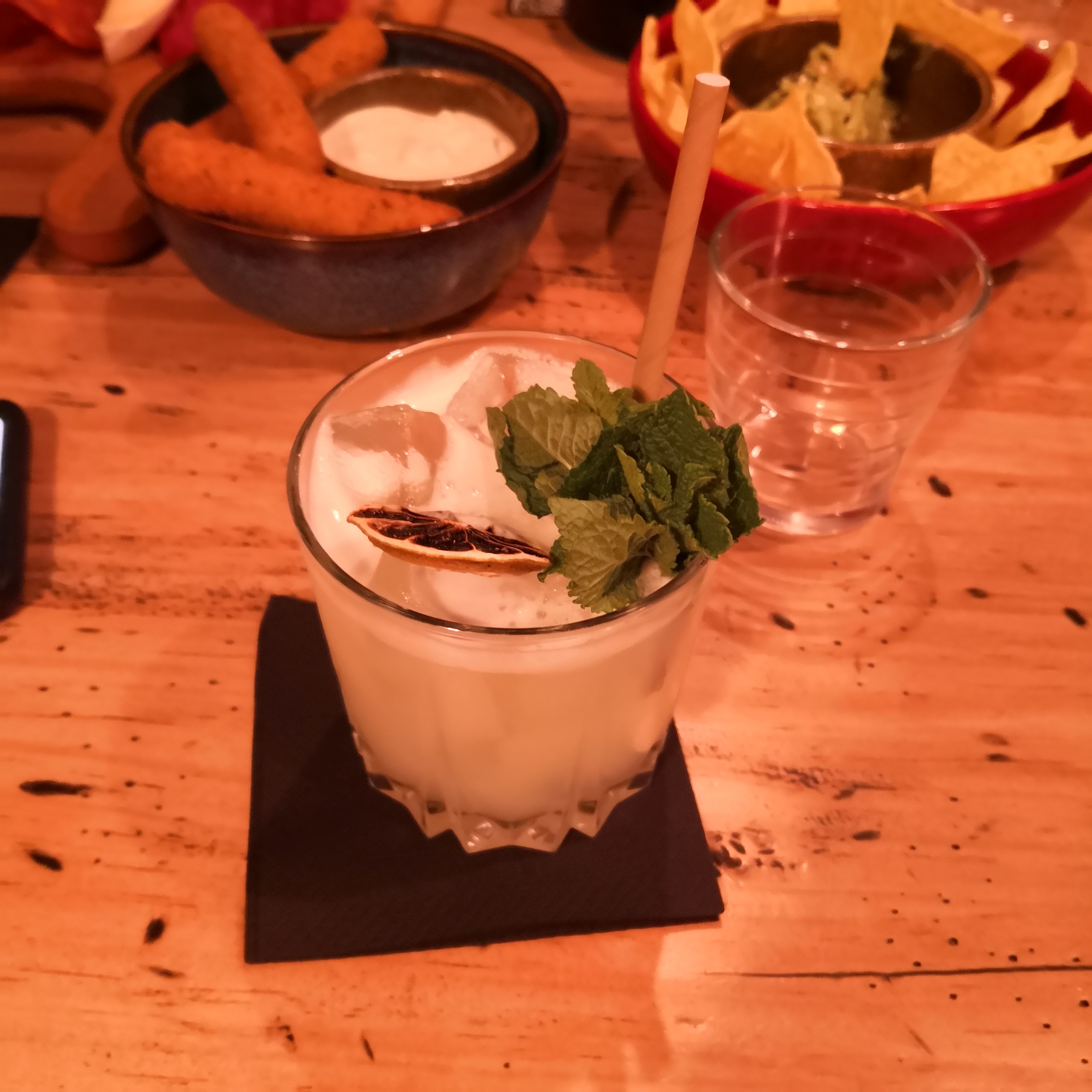 Apero en terrasse, mojitos très bons , petit ramequin gâteaux d apero offert, petite ambiance agréable, c'était un petit moment sympa.