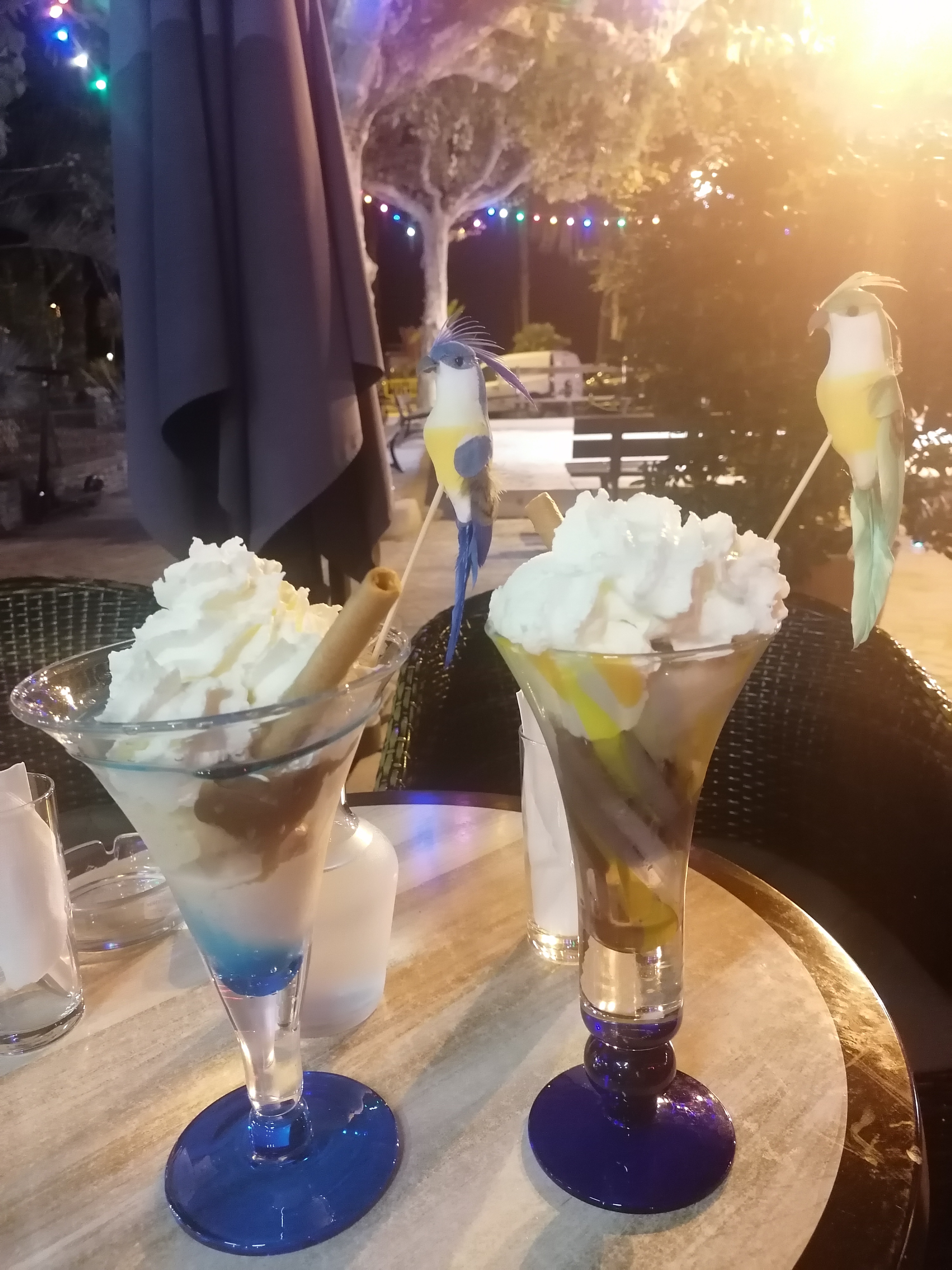 Nous avons dégusté de très bonnes glaces joliment décorées avec de petits perroquets. Service rapide.