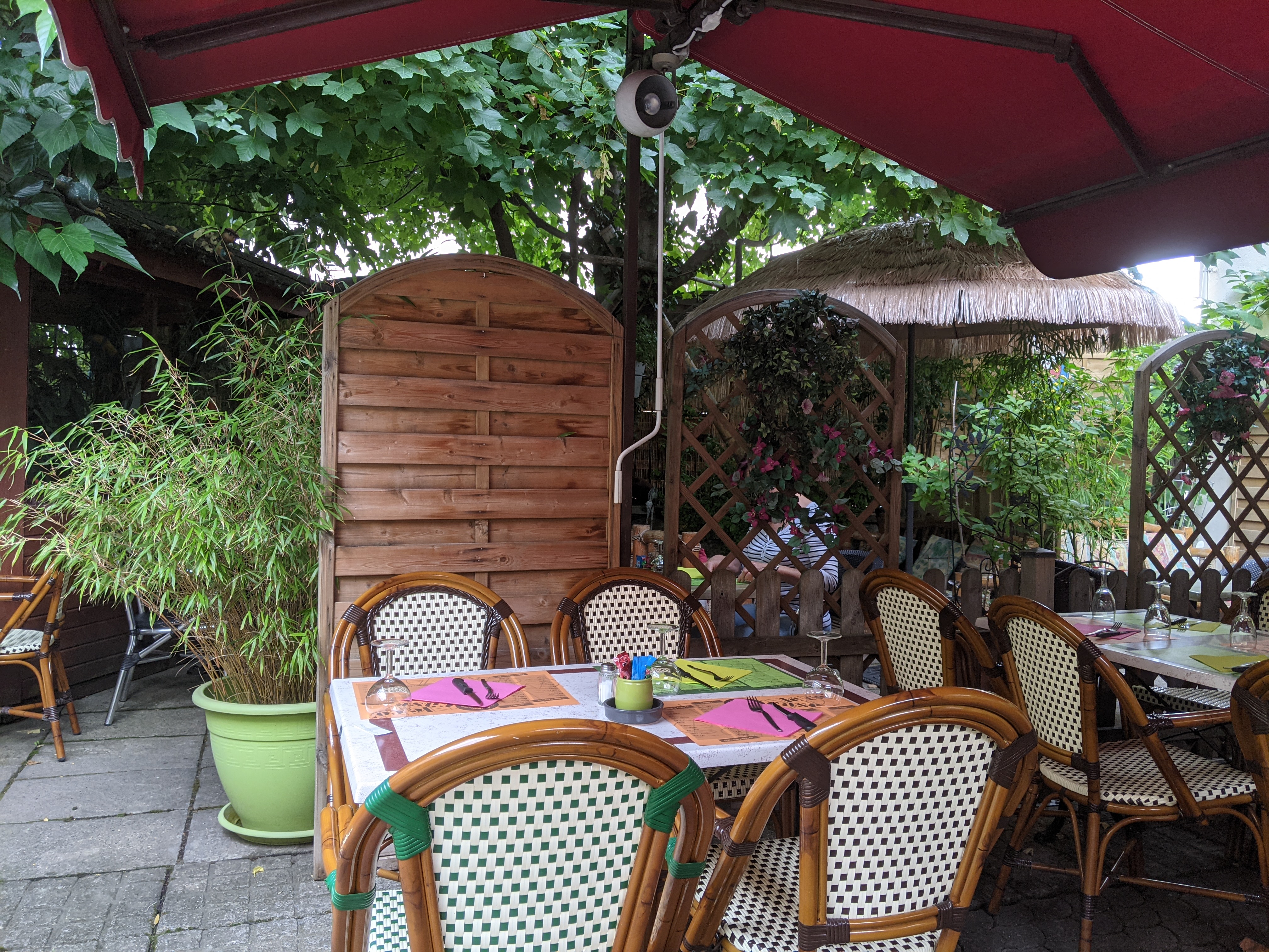 Un jardin agreable, des plats originaux, bien présentés et très bons. Accueil chaleureux et un vin rosé qui vaut le détour!
