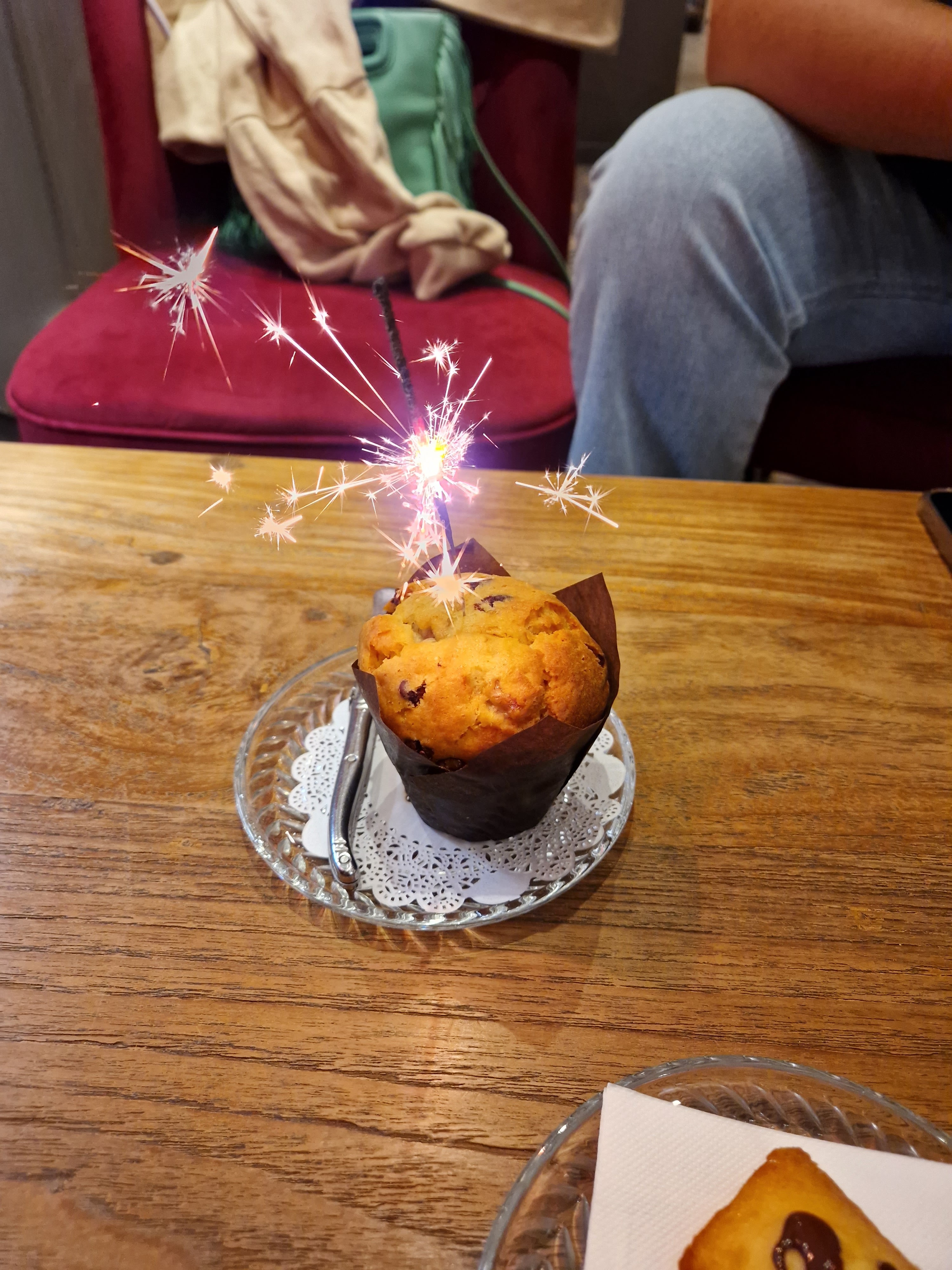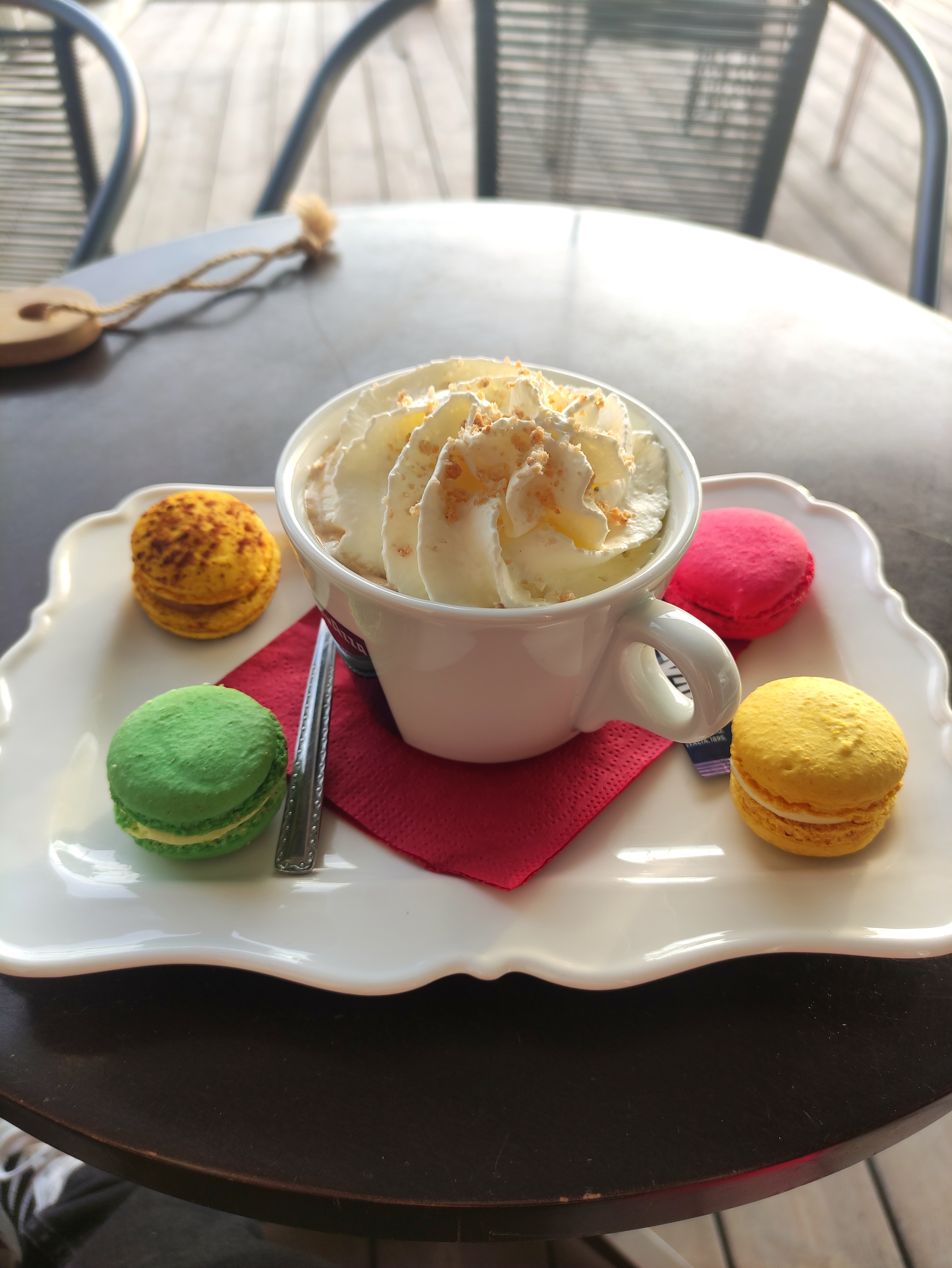 Lieu chaleureux où en plus les gourmandises sucrés sont délicieuses. Petite pause café et thé que nous avons savouré en terrasse, macarons pour madame, muffin banane-chocolat pour monsieur : juste parfait 😋