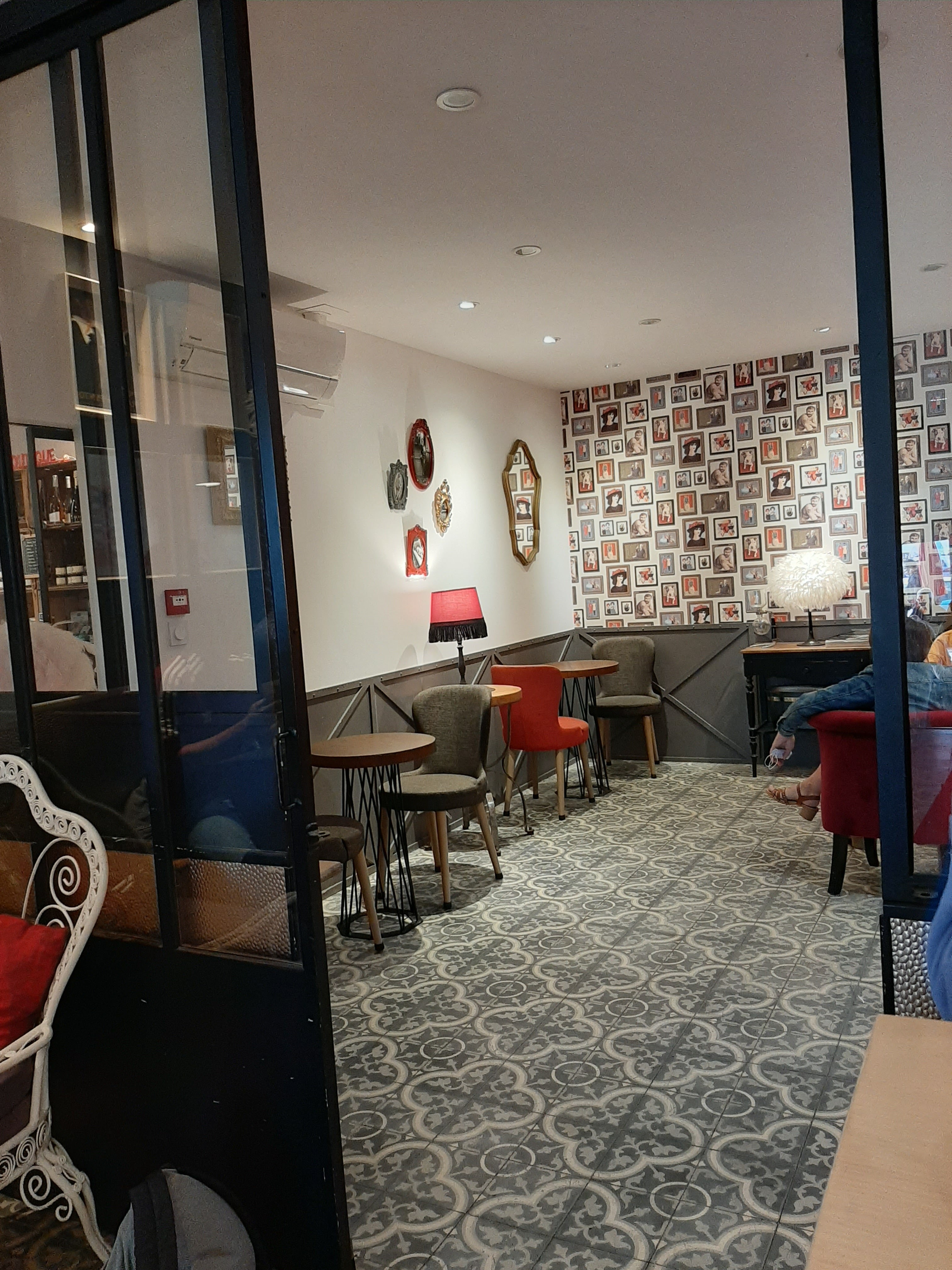 Salon de thé à ces heures ou pour prendre un apéro dans un cadre original et chaleureux , l'accueil aussi y est chaleureux et festif. Pensez à passer par le petit coin plus qu'atypique ! Et impeccable 💕💕💕
