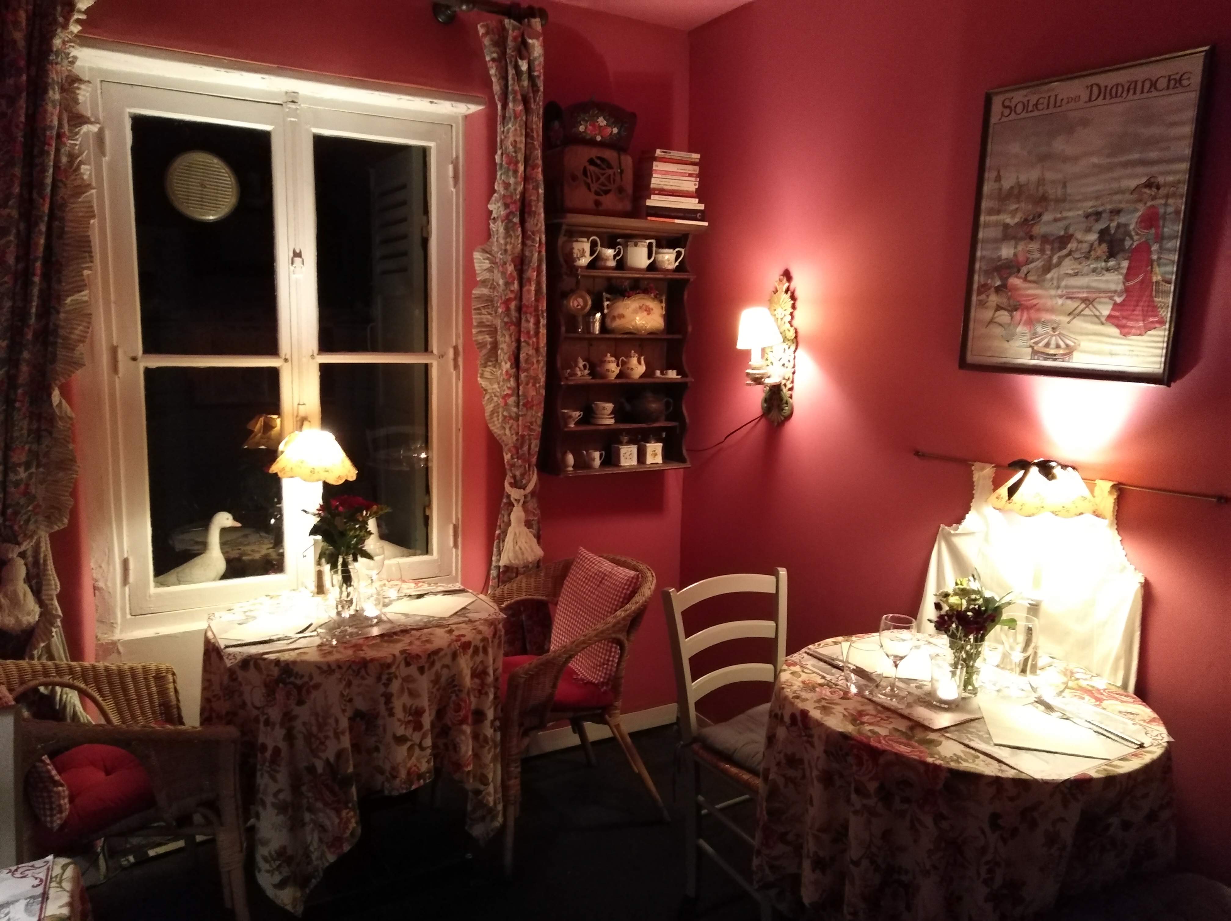 C est un endroit tres chouette avec une deco tres salon de thé a la francaise avec de jolies porcelaines. Plus un jolie jardin d été derriere. Pour prendre un thé c est parfait. Par contre la cuisine , que dire.. J y ait pris un brunch il y a 3 ans. c etait copieux mais horriblement gras avec des ingredients industriels.. Et pire encore j y suis allée il y a 5 ans pour manger un repas.. j ai pris du foi gras.. et bien c est le pire foi gras que j ai gouté de ma vie.. c etait clairement du foi gras 1er prix acheté au supermaché du coin (j ai trouvé l etiquette ds leur poubelle) inmangeable.. J ai signalé cela a la serveuse et ils ont daigné me servir une autre entrée.. Nous etions 3 avec 3 plats et entrées differents.. j ai tout gouté et vraiment des produits bas de gamme et le plus economique possible. Le rapport qual de cuisine/prix est desatreux. Quel dommage qu un endroit aussi chaleureux ds une jolie decoration soit incapable de servir une assiette correct! Mais je recommande pour aller boire un thé avec une patisserie. ces dernieres sont correct ss plus et c est plus l ambiance qui est a savourer que les plats. Resultat.. j habite a coté et je frequente regulierement d autre restos excellents de la grande rue.. Mais je n ais plus jamais poussé cette porte.. Depuis le temps ca a peut etre changé? je reste sur mes 2 impressions d il y a 3 et 5 ans
