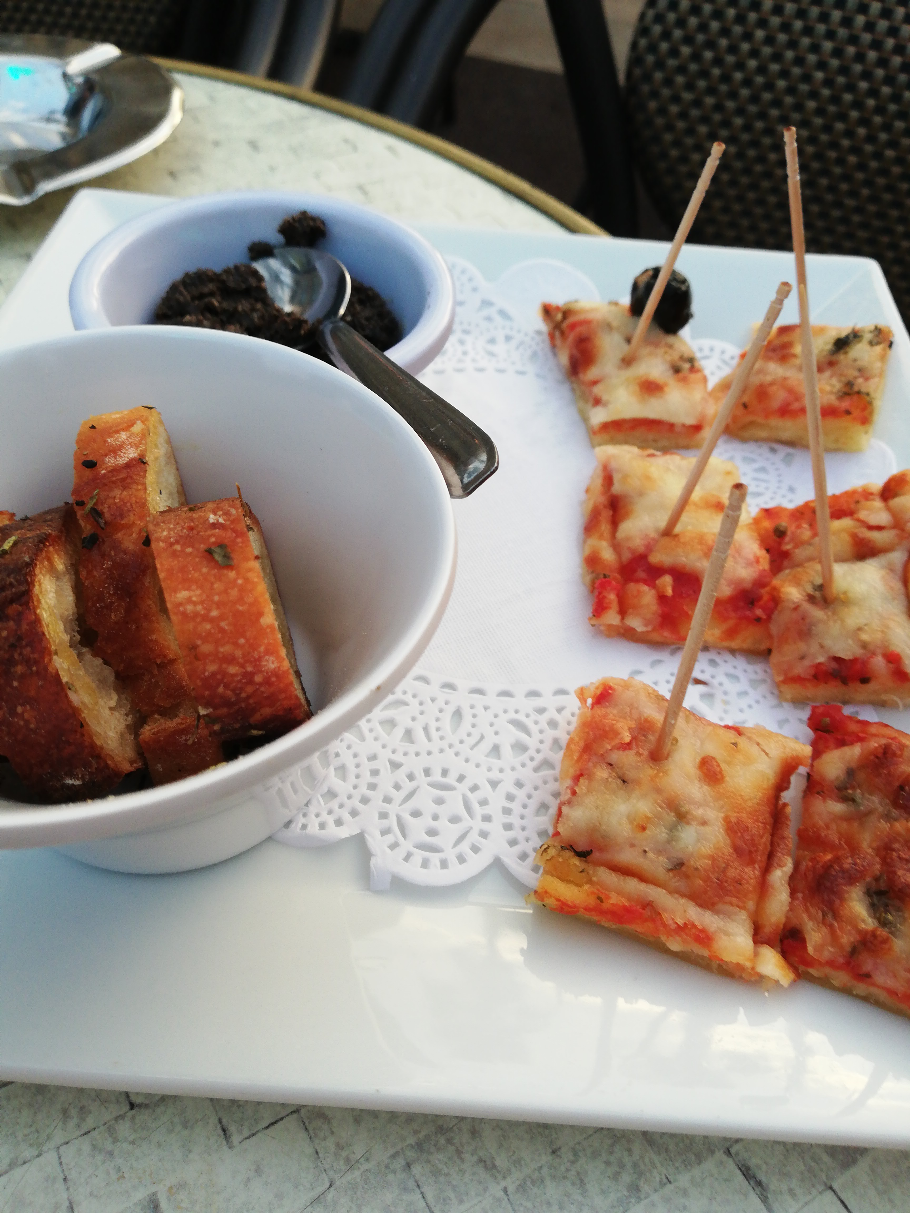 Prosecco et tapas. Bien et bon. Peu de monde à ce moment mais dommage, les tapas sont arrivés 15 mn après le rosé.